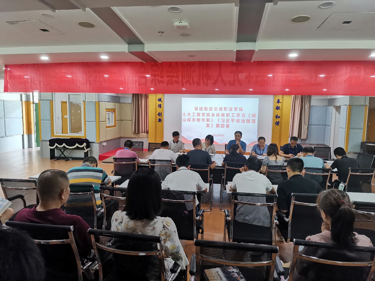 8月16日上午,土木工程學(xué)院召開(kāi)黨總支理論學(xué)習(xí)中心組(擴(kuò)大)學(xué)習(xí)會(huì)、全體教職工大會(huì),集中學(xué)習(xí)《閩山閩水物華新——習(xí)近平福建足跡》、《習(xí)近平談治國(guó)理政》第四卷。