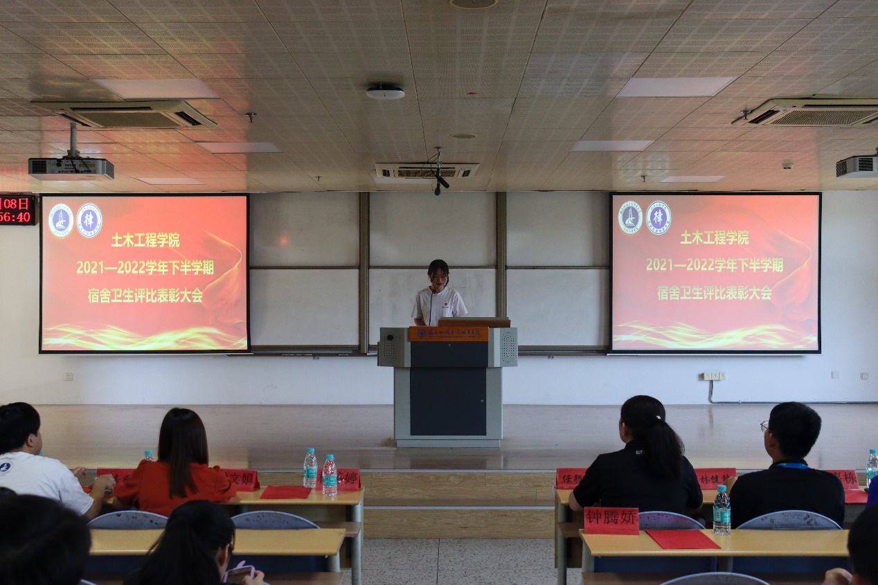 為深入貫徹落實(shí)全國(guó)教育工作會(huì)議精神,落實(shí)立德樹人根本任務(wù),培養(yǎng)德智體美勞全面發(fā)展的社會(huì)主義建設(shè)者和接班人,持續(xù)完善育人體系,引導(dǎo)我院學(xué)生養(yǎng)成良好的習(xí)慣,進(jìn)一步加強(qiáng)宿舍環(huán)境建設(shè),營(yíng)造優(yōu)良宿舍氛圍,土木工程學(xué)院于9月8日在南區(qū)科技樓305教室舉辦衛(wèi)生評(píng)比表彰大會(huì)。參與大會(huì)的領(lǐng)導(dǎo)有土木工程學(xué)院黨總支副書記任穎卿副教授和土木工程學(xué)院團(tuán)委副書記林健鋒老師、輔導(dǎo)員老師和各宿舍代表。