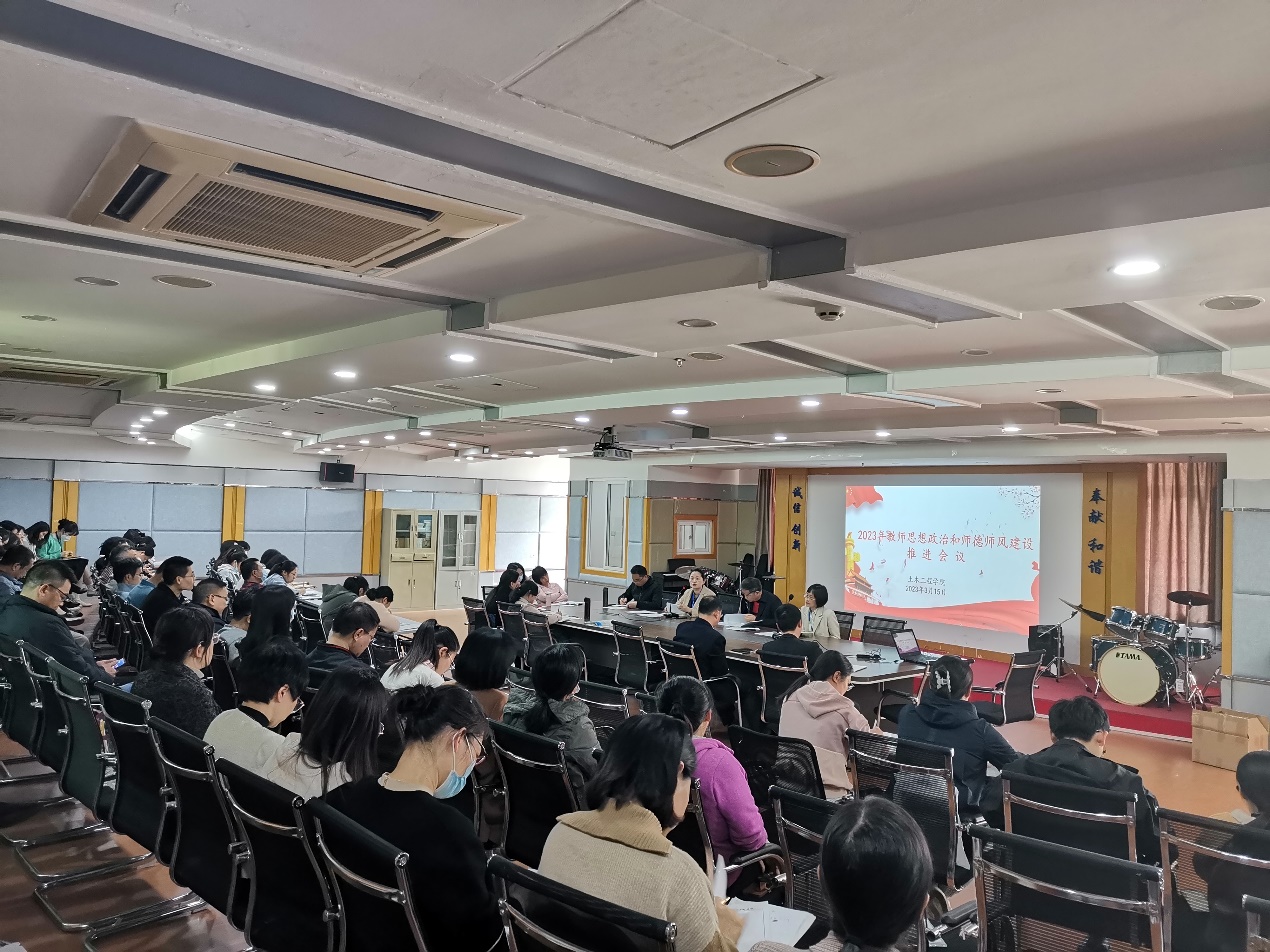 會議強調,一是要提高政治站位,深入學習貫徹黨的二十大精神和習近平總書記關于新時代教師隊伍師德師風建設的重要論述精神,以高度的責任感和使命感,充分認識加強教師思想政治和師德師風建設對學院高質量發(fā)展的重要意義;二是要時刻銘記立德樹人任務,牢牢把握師德師風作為評價教師隊伍素質的第一標準,對師德違規(guī)問題“零容忍”;三是要強化提升教師思想政治工作質量,不斷完善師德師風建設長效機制,深化課程思政教學改革,構建“三全育人”大思政育人體系,做“有理想信念、有道德情操、有扎實學識、有仁愛之心”的“四有”好老師;四是要在常態(tài)化開展師德教育的同時加強警示教育,劃“紅線”,守“底線”,筑“防線”,維護教師職業(yè)形象,提振師道尊嚴。