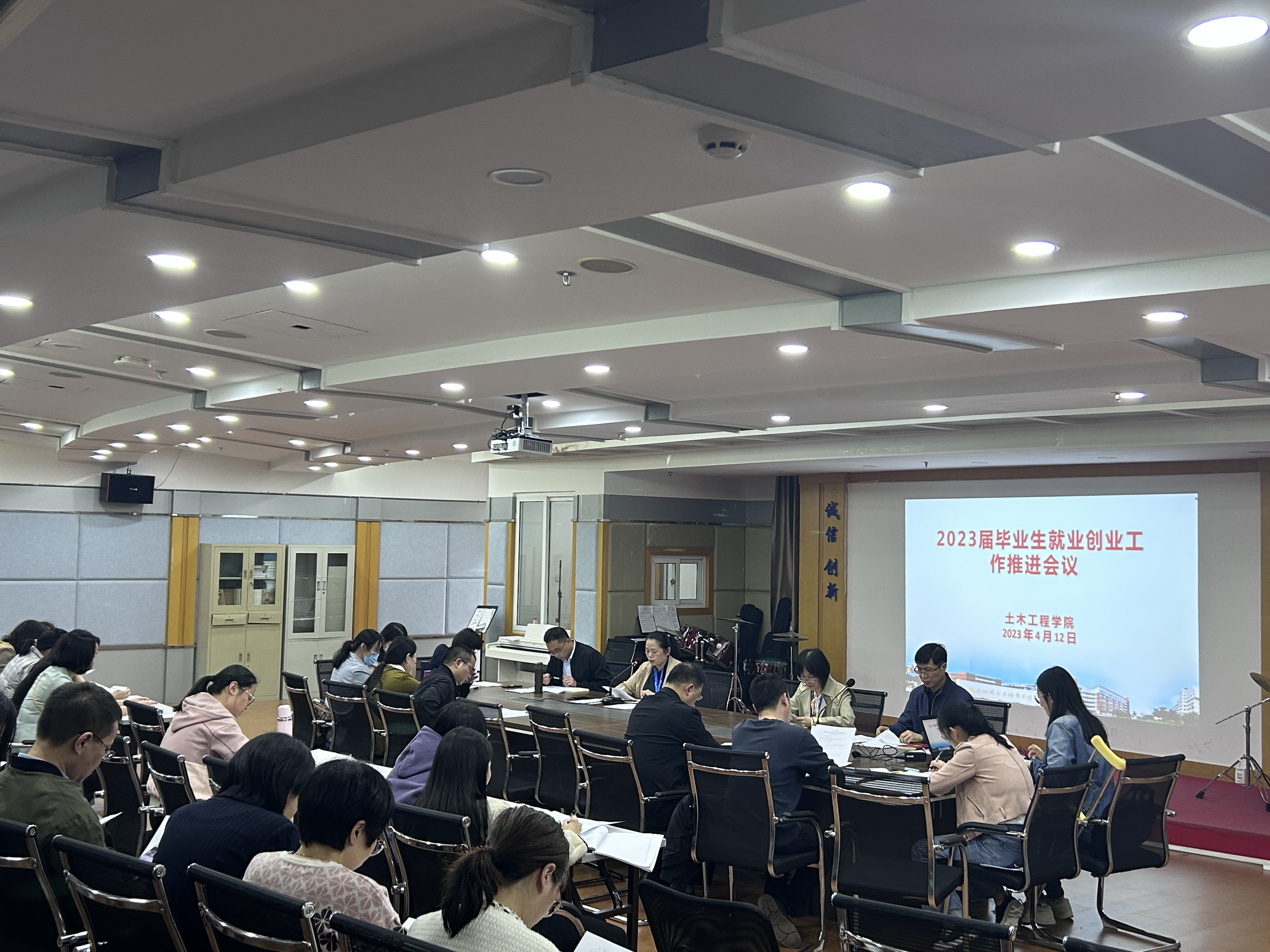 為深入學(xué)習(xí)貫徹黨的二十大精神,統(tǒng)籌推進(jìn)學(xué)院2023屆畢業(yè)生就業(yè)工作,4月12日下午,土木工程學(xué)院在創(chuàng)新樓1007召開2023屆畢業(yè)生就業(yè)創(chuàng)業(yè)工作推進(jìn)會(huì)。學(xué)院領(lǐng)導(dǎo)、各教研室主任、2023屆畢業(yè)班班主任、全體專兼職輔導(dǎo)員參加了會(huì)議。