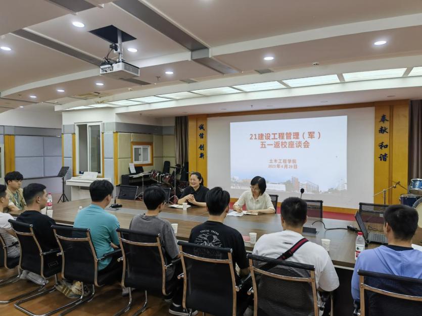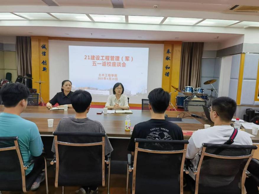 2023年4月29日下午,土木工程學(xué)院在創(chuàng)新樓1007召開“院長書記面對面”退役軍人班座談會(huì)。院長黃穎博士、黨總支副書記任穎卿、帶班輔導(dǎo)員鐘騰嬌、21建設(shè)工程管理軍人班返校學(xué)生代表參加了座談會(huì)。會(huì)議由黨總支副書記任穎卿主持。