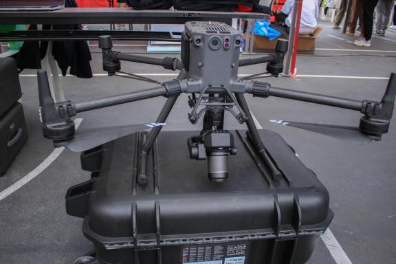 表演正式開(kāi)始,首先由社團(tuán)社長(zhǎng)上臺(tái)表演組裝大疆經(jīng)緯M300 RTK無(wú)人機(jī),在主持人講解的同時(shí),他熟練得組裝著這個(gè)龐大無(wú)比的無(wú)人駕駛直升機(jī)。