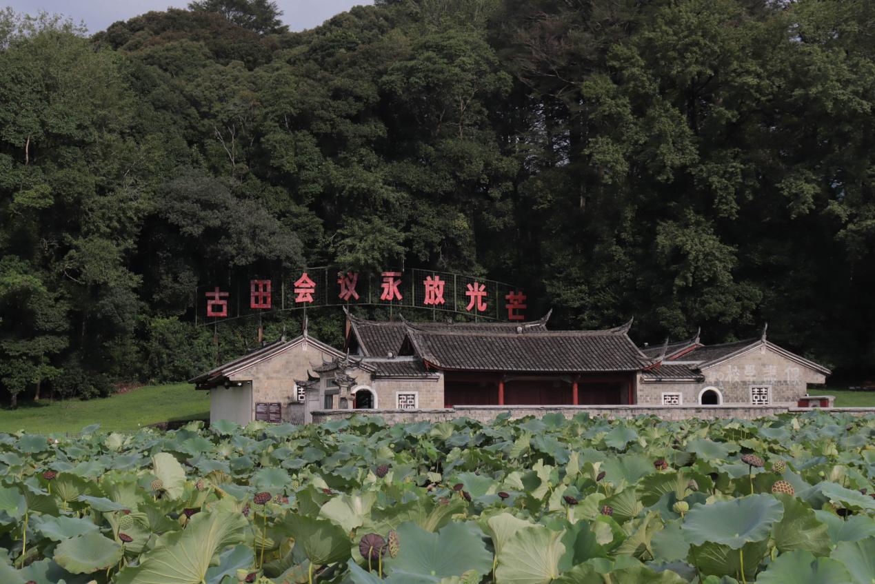 在福建省上杭縣古田鎮(zhèn)的一片開闊田野上,坐落著一座白墻青瓦的四合院式宗祠建筑,后山坡上“古田會議永放光芒”八個紅色大字在綠蔭襯托下熠熠生輝。這里就是著名的古田會議會址。