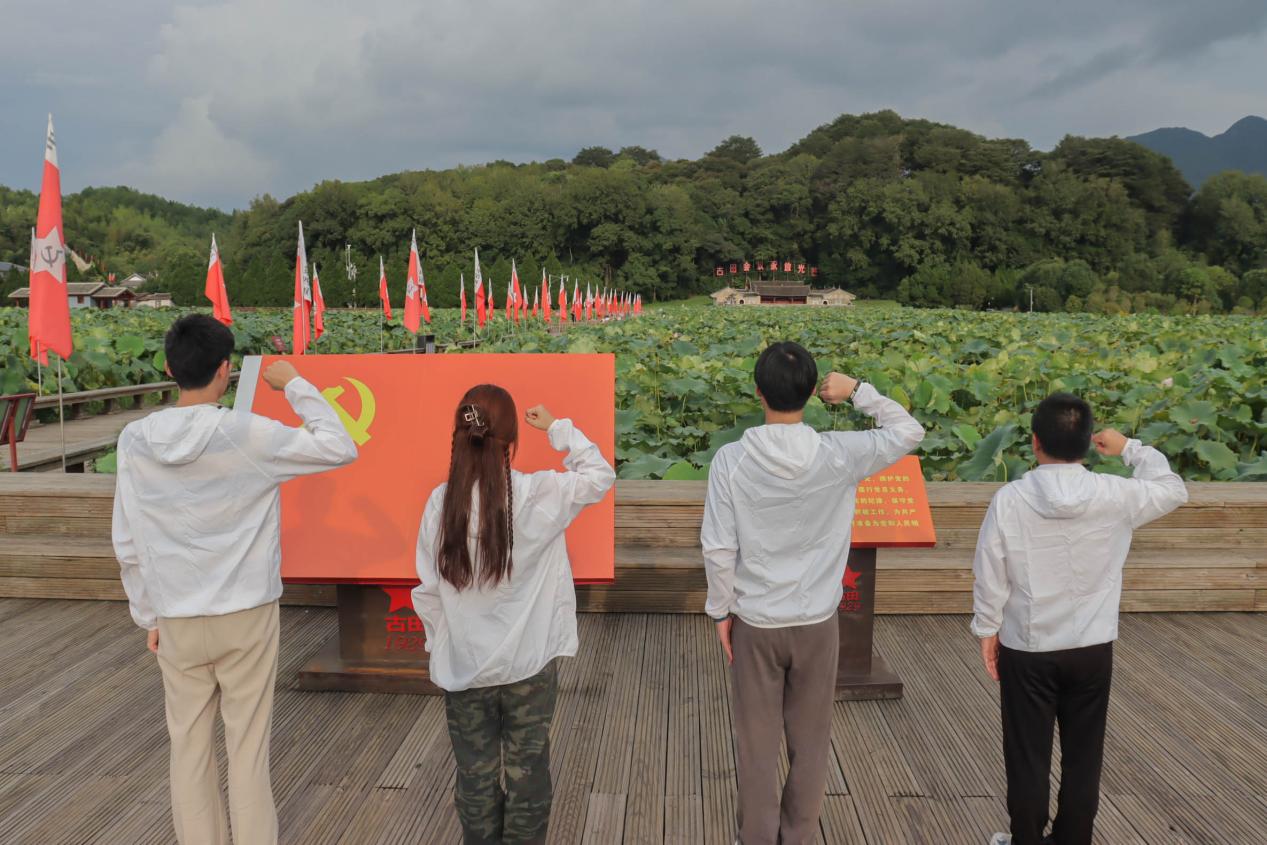 在古田會議舊址入黨誓詞宣誓處, 實踐團全體成員在實踐隊指導老師的帶領下,右手握拳,莊嚴地向黨進行宣誓。入黨誓詞回響百年,紅色血脈賡續(xù)綿延,初心使命歷久彌堅。