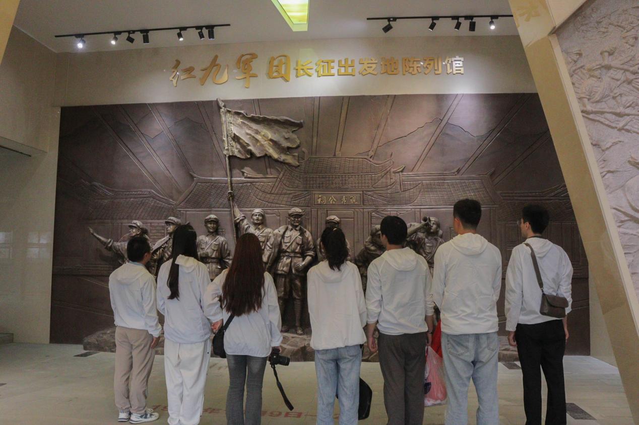 隨后,實踐團(tuán)成員們來到了紅九軍長征出發(fā)地陳列館,序廳的四組雕塑分別以“軍民魚水情”“渡河”“三過雪山草地”、“將臺堡會師”為主題,記錄了紅九軍團(tuán)長征出發(fā)至?xí)熼g的重要史實。