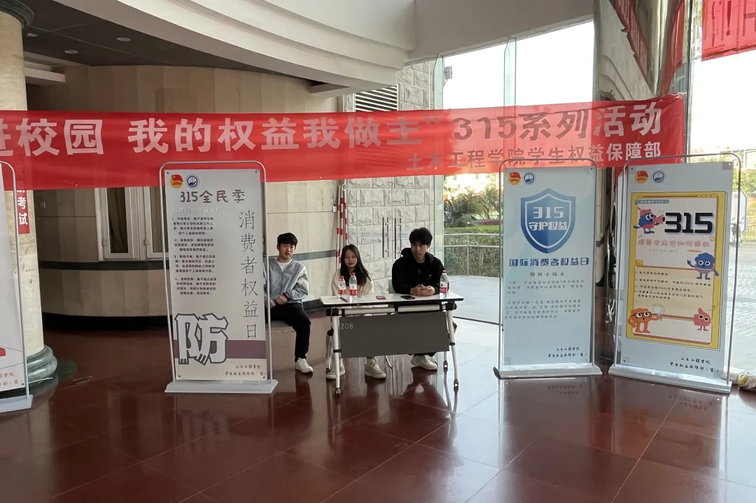 為了宣傳3·15國(guó)際消費(fèi)者權(quán)益日,同時(shí)為了更加深入宣傳《消費(fèi)者權(quán)益法》等法律條文及維權(quán)意識(shí)。3月15日土木工程學(xué)院學(xué)生權(quán)益保障部在創(chuàng)新樓開(kāi)展了“和諧消費(fèi)進(jìn)校園,我的權(quán)益我做主”線下的消費(fèi)者維權(quán)意識(shí)介紹活動(dòng)。