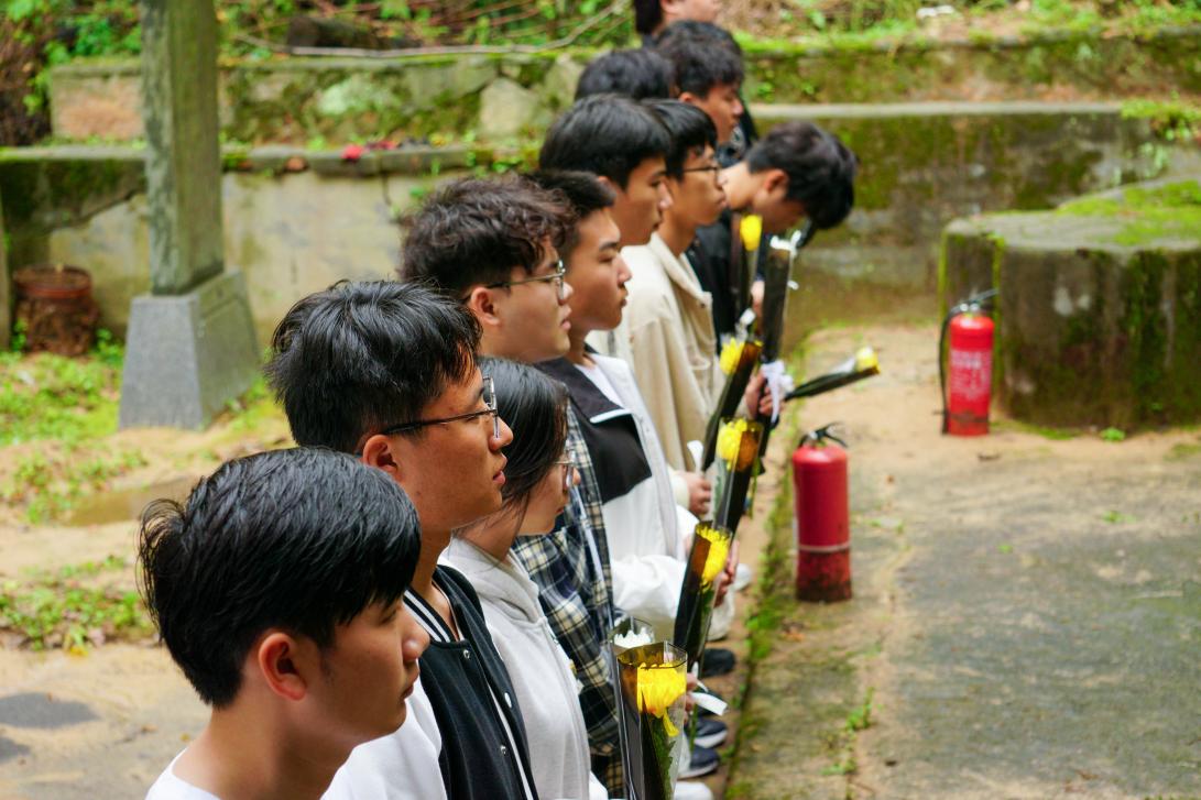 在墓園,同學(xué)們懷揣著對先輩的崇敬之情,追思先輩創(chuàng)辦船政之艱辛,列隊肅立、默哀,敬獻(xiàn)鮮花,向我們的“船政之父”表達(dá)敬意、寄托哀思。