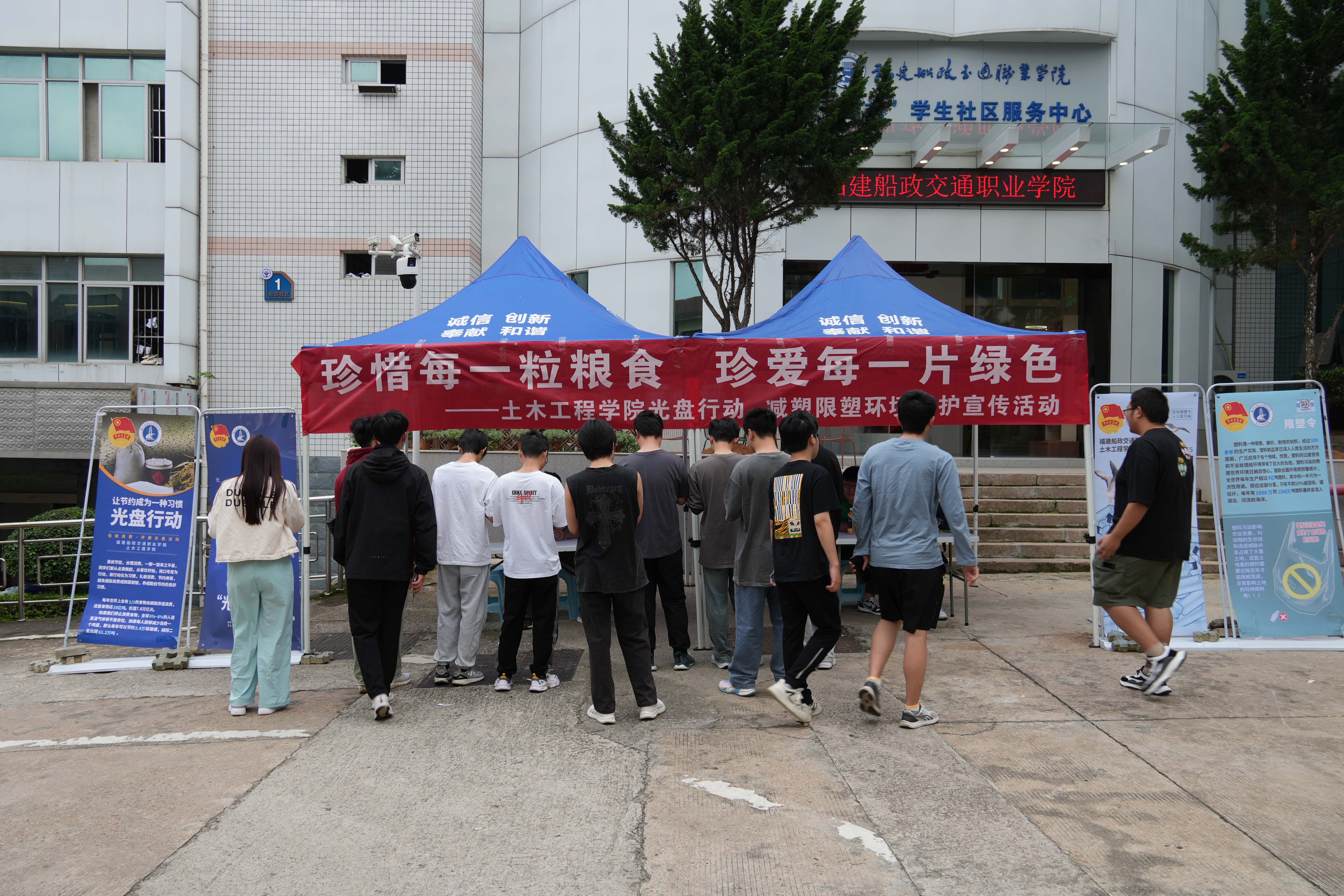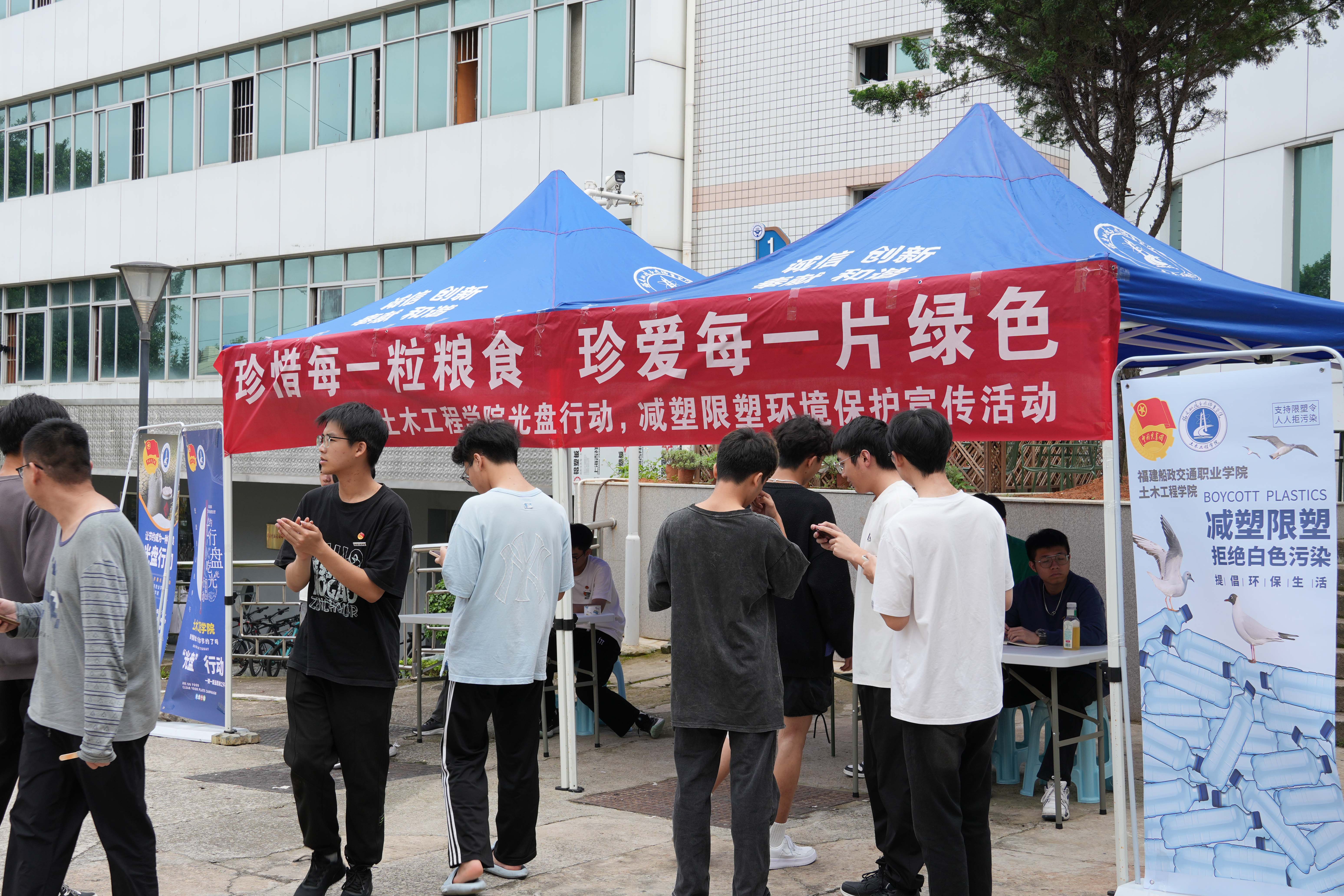 為發(fā)揚中華民族勤儉節(jié)約、與自然和諧共生的傳統(tǒng)美德,響應(yīng)習(xí)近平總書記“綠水青山就是金山銀山”的號召,增強同學(xué)們節(jié)約糧食和保護環(huán)境意識,引導(dǎo)同學(xué)們養(yǎng)成良好的行為習(xí)慣。2024年4月24日,土木工程學(xué)院在福航園“一站式”學(xué)生社區(qū)服務(wù)中心開展“光盤行動,‘塑’戰(zhàn)‘塑’決”宣傳活動。