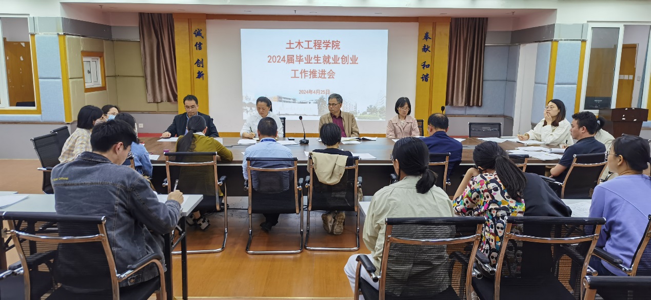 為全力促進(jìn)高校畢業(yè)生高質(zhì)量充分就業(yè),進(jìn)一步做好2024屆畢業(yè)生就業(yè)創(chuàng)業(yè)工作相關(guān)部署,4月25日下午,土木工程學(xué)院在創(chuàng)新樓1007會(huì)議室召開2024屆畢業(yè)生就業(yè)創(chuàng)業(yè)工作推進(jìn)會(huì)。學(xué)院領(lǐng)導(dǎo)班子、各教研室主任及畢業(yè)班輔導(dǎo)員參加了會(huì)議,會(huì)議由黨總支副書記任穎卿主持。