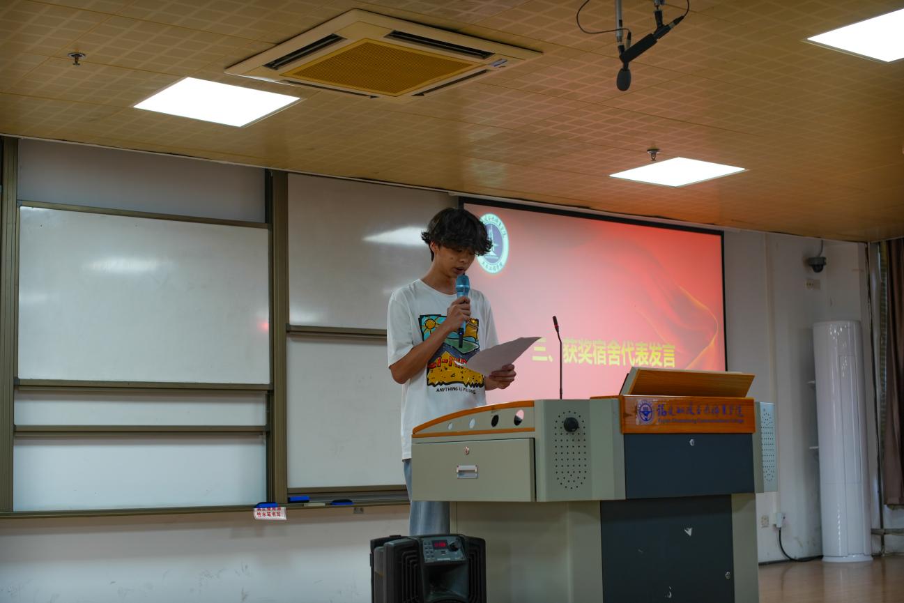 本次評比共有30間學生宿舍經(jīng)過日常檢查和隨機抽查,最終榮獲文明宿舍稱號。這些獲獎宿舍環(huán)境清雅明凈,室友關系和睦。獲獎宿舍長代表林星彤同學向大家分享在日常生活中如何和室友一起構建“家庭宿舍”,齊心協(xié)力、共同進步。