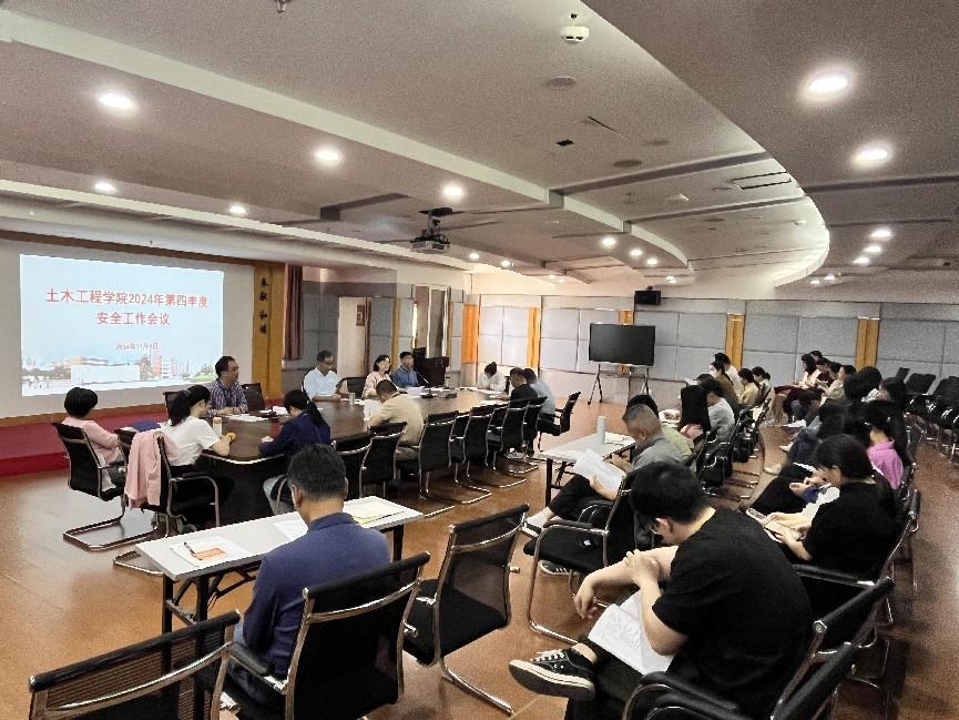 2024年11月6日下午,土木工程學(xué)院在創(chuàng)新樓1007會(huì)議室,召開了學(xué)院2024年第四季度安全工作會(huì)議。學(xué)院領(lǐng)導(dǎo)班子成員、組織員、教研室主任、辦公室人員、全體實(shí)訓(xùn)中心成員及全體輔導(dǎo)員參加會(huì)議。會(huì)議由土木學(xué)院朱明栓副院長主持。