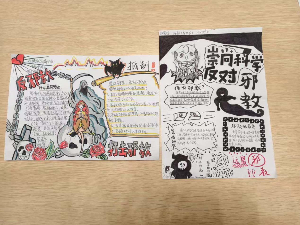 活動現(xiàn)場,同學(xué)們通過制作反邪教主題手抄報,學(xué)習(xí)關(guān)于防范和處理邪教問題有關(guān)的方針政策、法律法規(guī),增強(qiáng)反邪教意識。大家紛紛表示要從自身做起,切實(shí)提高分辨是非的能力,徹底與邪教組織劃清界限,并積極宣傳和教育身邊的親人和朋友拒絕邪教、崇尚科學(xué)、倡導(dǎo)文明、陽光生活。