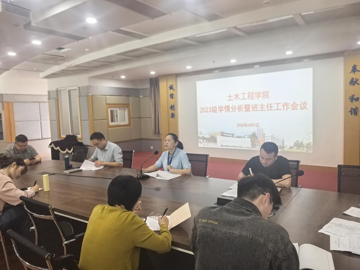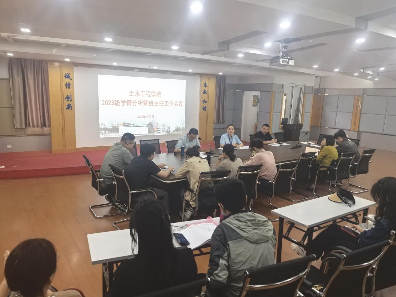 為堅(jiān)守“立德樹人”初心使命,錨定新時(shí)代教育強(qiáng)國(guó)建設(shè)目標(biāo),深耕土木工程學(xué)院“三全育人”大思政格局,凝聚班主任與輔導(dǎo)員協(xié)同育人合力。2025年4月9日,我院于福船園創(chuàng)新樓1007召開2023級(jí)學(xué)情分析暨班主任工作會(huì)議。學(xué)院黨總支副書記任穎卿,2023級(jí)輔導(dǎo)員以及2023級(jí)班主任參加本次會(huì)議。
