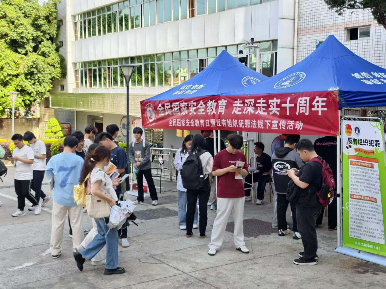 2025年4月15日是第十個全民國家安全教育日,為深入學習貫徹習近平總書記關(guān)于國家安全的重要講話精神,貫徹落實總體國家安全觀,筑牢反有組織犯罪的社會防線,建設(shè)平安法治校園。4月15日,土木工程學院于福航園“一站式”學生社區(qū),開展“全民國家安全教育,走深走實十周年”全民國家安全教育日暨《反有組織犯罪法》線下宣傳活動。