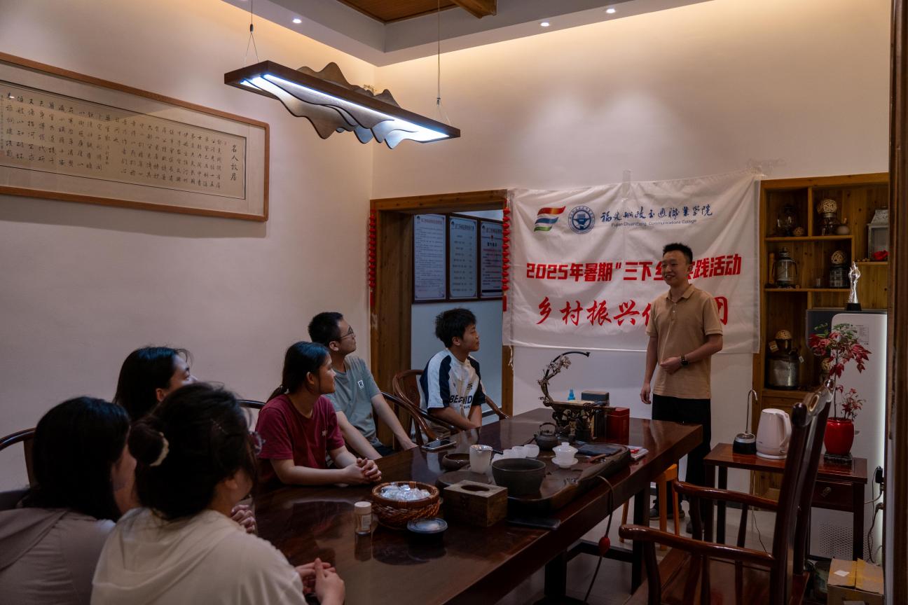 實(shí)踐期間,實(shí)踐團(tuán)有幸迎來了一位以實(shí)干助力鄉(xiāng)村振興的優(yōu)秀校友——鄭永琪。作為福建省2024屆選調(diào)生,他于2024年7月主動投身基層,來到連城縣朋口鎮(zhèn)朋城村擔(dān)任黨支部書記助理。這片兼具地理優(yōu)勢與產(chǎn)業(yè)活力的土地,正需要年輕力量的注入:這里是205國道與319國道交匯處,毗鄰冠豸山南動車站,蘭花產(chǎn)業(yè)形成“黨建+合作社+農(nóng)戶”的全產(chǎn)業(yè)鏈,家具產(chǎn)業(yè)憑借豐富林竹資源聚集成群,還有多家名優(yōu)企業(yè)帶動就業(yè)與稅收。