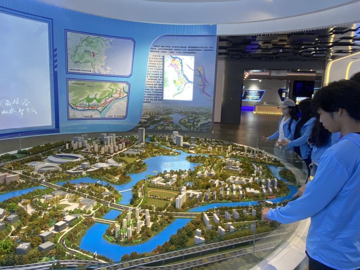告別歷史的厚重,實(shí)踐團(tuán)走進(jìn)了充滿現(xiàn)代科技感的福州規(guī)劃館。