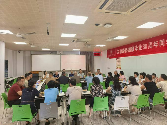 夏風(fēng)攜余溫,歲月藏深情。2025年8月23日,土木工程學(xué)院92級(jí)路橋4班畢業(yè)30周年師生座談會(huì)在南區(qū)創(chuàng)新樓306室隆重舉行,原土建系主任周志堅(jiān),土木工程學(xué)院黨總支書記高杰,土木學(xué)院副院長(zhǎng)朱明栓,校友會(huì)常務(wù)副會(huì)長(zhǎng)、土木工程專委會(huì)會(huì)長(zhǎng)俞素平和當(dāng)年部分任課教師等受邀出席座談會(huì)。