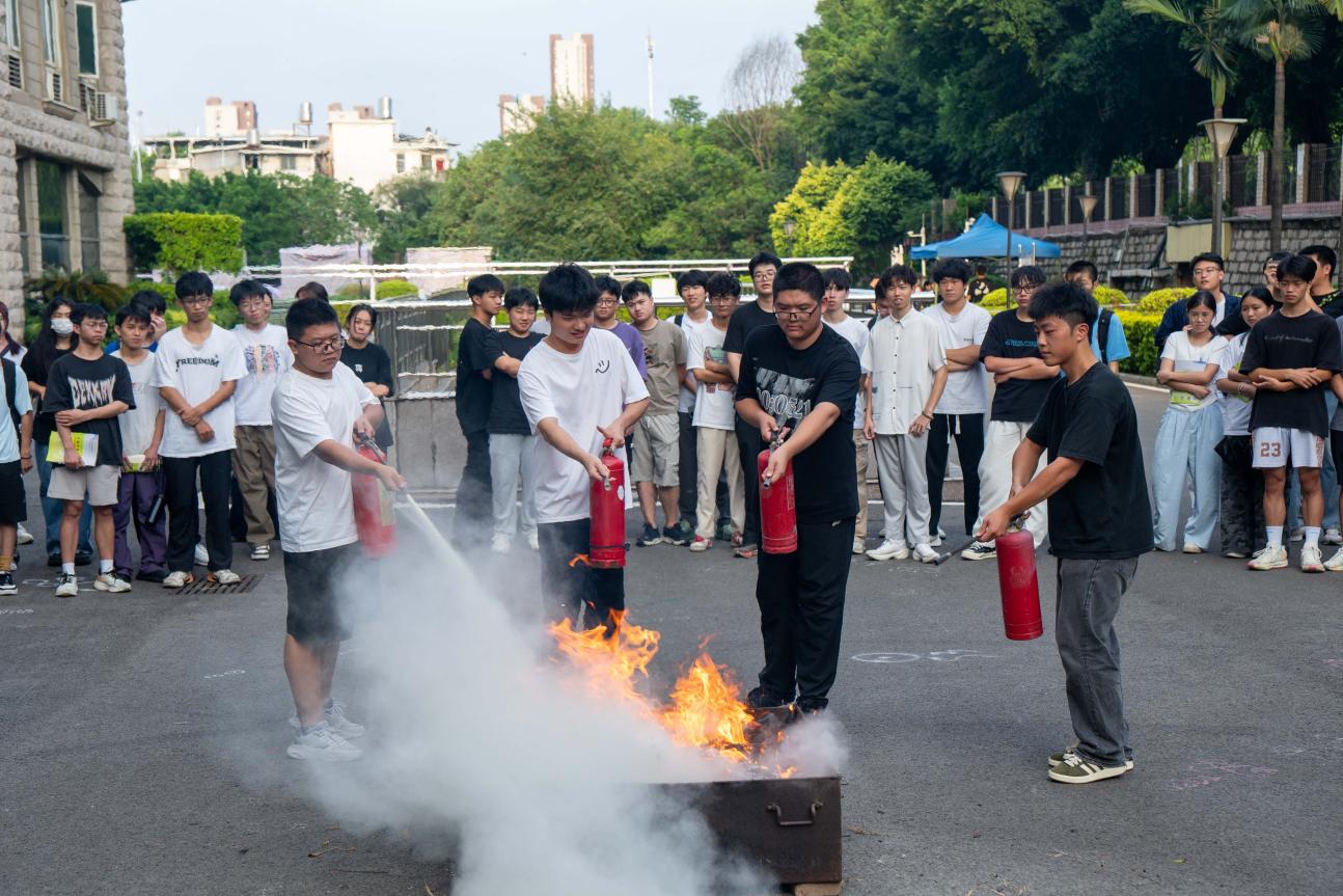隨著警報(bào)聲響起,活動(dòng)第二部分實(shí)戰(zhàn)演練拉開(kāi)序幕,同學(xué)們配合引導(dǎo)人員按照預(yù)設(shè)路線有序從消防通道撤離到創(chuàng)新樓外安全地點(diǎn),演練整體過(guò)程有條不紊。隨后,工作人員向大家演示了消防器材的正確用法,同學(xué)們積極參與其中,通過(guò)實(shí)踐掌握滅火器的基本用法,將安全意識(shí)內(nèi)化為本能反應(yīng),構(gòu)建“消防始于行,安全植于心”的校園安全氛圍。