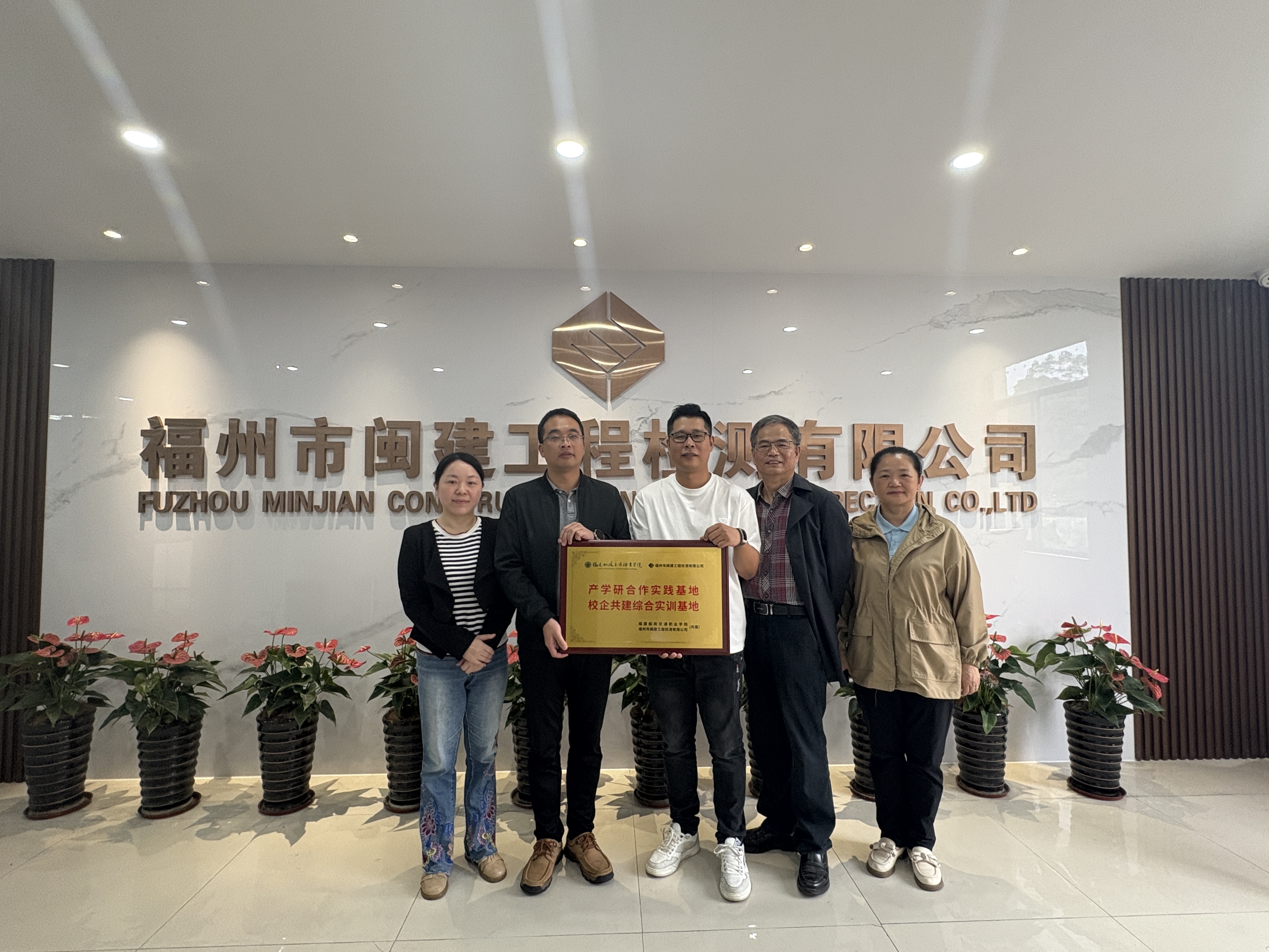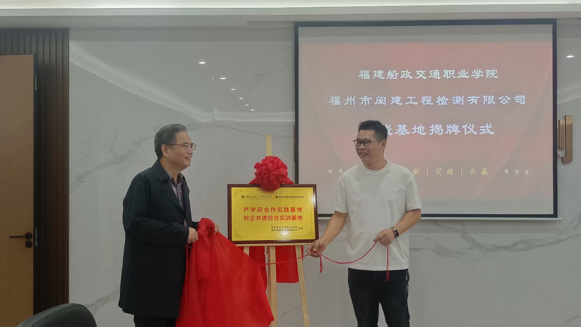 隨后,土木學(xué)院書記高杰與閩建檢測總經(jīng)理吳文岳共同為“校企共建綜合實訓(xùn)基地”揭牌。