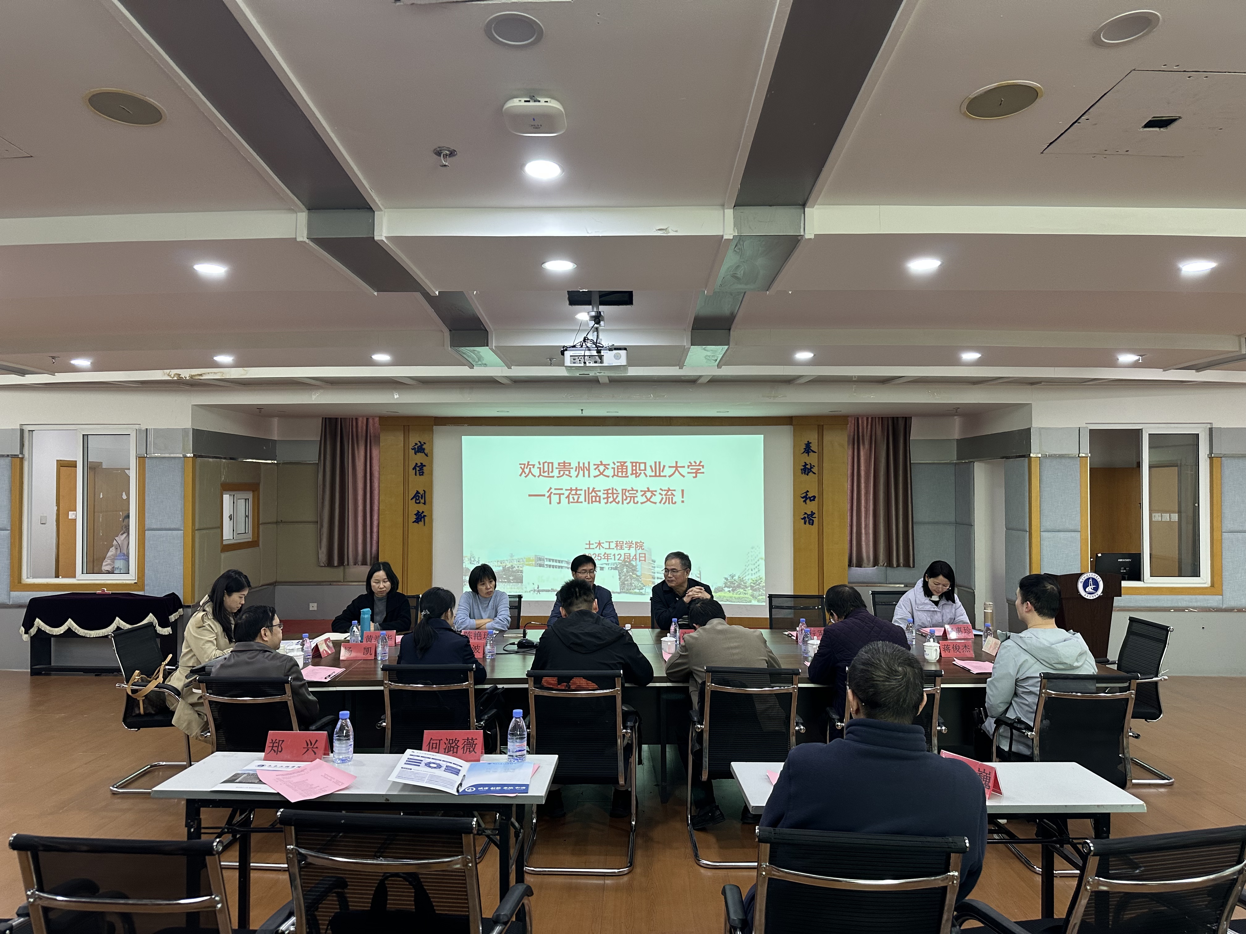 為共探職業(yè)教育高質(zhì)量發(fā)展路徑,2025年12月4日上午,貴州交通職業(yè)大學(xué)路橋工程學(xué)院、智慧交通學(xué)院一行等8人,赴我校土木工程學(xué)院開展專業(yè)能力圖譜建設(shè)、實(shí)訓(xùn)室建設(shè)等調(diào)研交流。院黨總支書記高杰、副院長卓維松及相關(guān)專業(yè)骨干教師參加了座談。