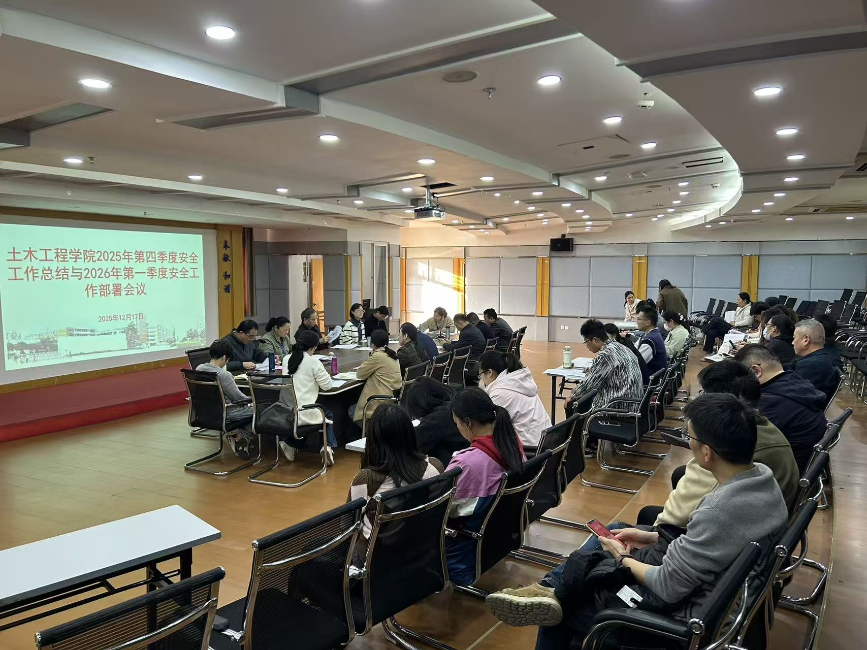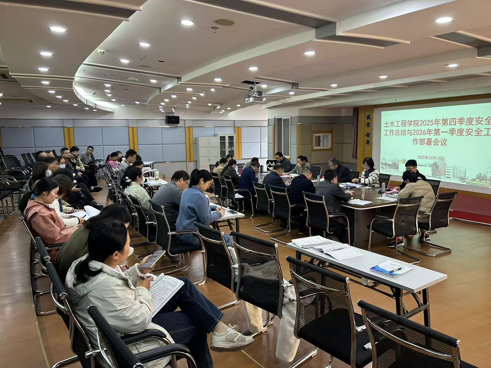 12月17日,土木工程學(xué)院在創(chuàng)新樓1007會議室召開2025年第四季度安全工作會議,總結(jié)年度及第四季度安全工作情況,分析當(dāng)前面臨的安全形勢與風(fēng)險點,并對歲末年初及下一階段安全重點工作進(jìn)行部署。學(xué)院領(lǐng)導(dǎo)班子成員、組織員、教研室主任、辦公室人員、全體實訓(xùn)中心成員及輔導(dǎo)員參加會議。會議由土木學(xué)院副院長朱明栓主持。