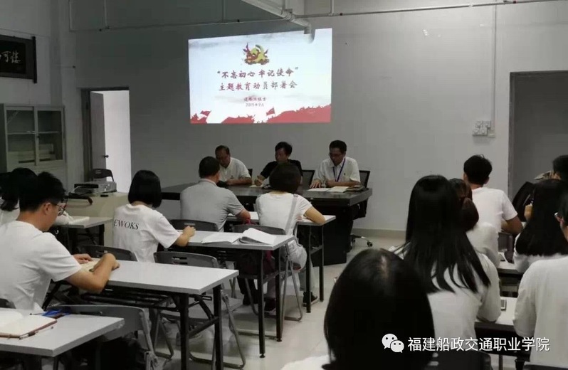 9月20日上午,福建船政交通職業(yè)學(xué)院道路工程系召開“不忘初心、牢記使命”主題教育動(dòng)員大會(huì),系主任高杰主持會(huì)議,系書記江文作動(dòng)員講話,學(xué)院巡回指導(dǎo)組二組組長王心金到會(huì)指導(dǎo)并講話。學(xué)院巡回指導(dǎo)組二組成員,道路工程系全體黨員,部分教職工、入黨積極分子代表出席會(huì)議。