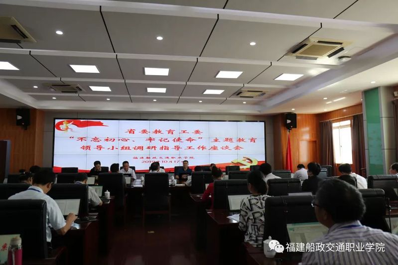 10月17日上午,省委教育工委副書記、省委教育工委主題教育領導小組副組長、領導小組辦公室主任王建南一行到福建船政交通職業(yè)學院調研指導“不忘初心、牢記使命”主題教育工作。學院“不忘初心、牢記使命”主題教育領導小組全體成員參加了調研座談會。
