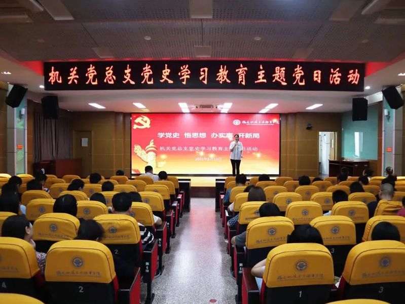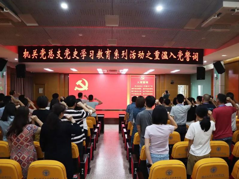 為進(jìn)一步推進(jìn)黨史學(xué)習(xí)教育深入開展,大力弘揚(yáng)革命文化、傳承紅色基因,強(qiáng)化機(jī)關(guān)黨員干部的黨性修養(yǎng)和理想信念,5月13日下午,機(jī)關(guān)黨總支在北區(qū)1#樓學(xué)術(shù)報(bào)告廳開展“學(xué)黨史 悟思想 辦實(shí)事 開新局”黨史學(xué)習(xí)教育主題黨日活動(dòng)。機(jī)關(guān)12個(gè)黨支部,近100名黨員參加了活動(dòng)。