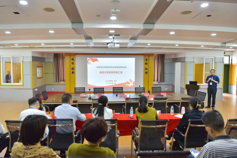 下午,在土木工程學(xué)院召開了現(xiàn)場推進(jìn)會(huì),校領(lǐng)導(dǎo)、相關(guān)職能部門、二級學(xué)院班子全體成員參會(huì)?,F(xiàn)場推進(jìn)會(huì)上,土木工程學(xué)院黨總支書記高杰就黨總支會(huì)議、黨政聯(lián)席會(huì)議召開情況向與會(huì)人員做了匯報(bào),隨后,大家一同觀摩了土木工程學(xué)院黨總支會(huì)議、黨政聯(lián)席會(huì)議現(xiàn)場會(huì)。