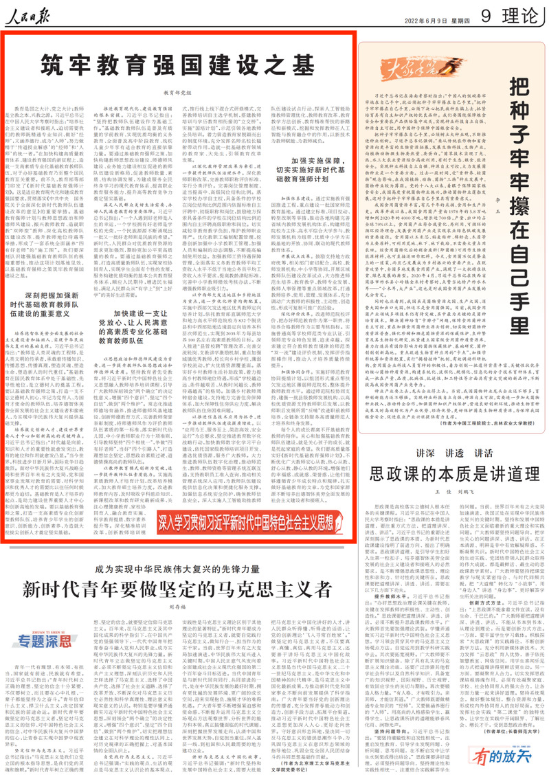 6月9日,教育部黨組在《人民日報》刊發(fā)文章《筑牢教育強國建設(shè)之基》,一起來看——