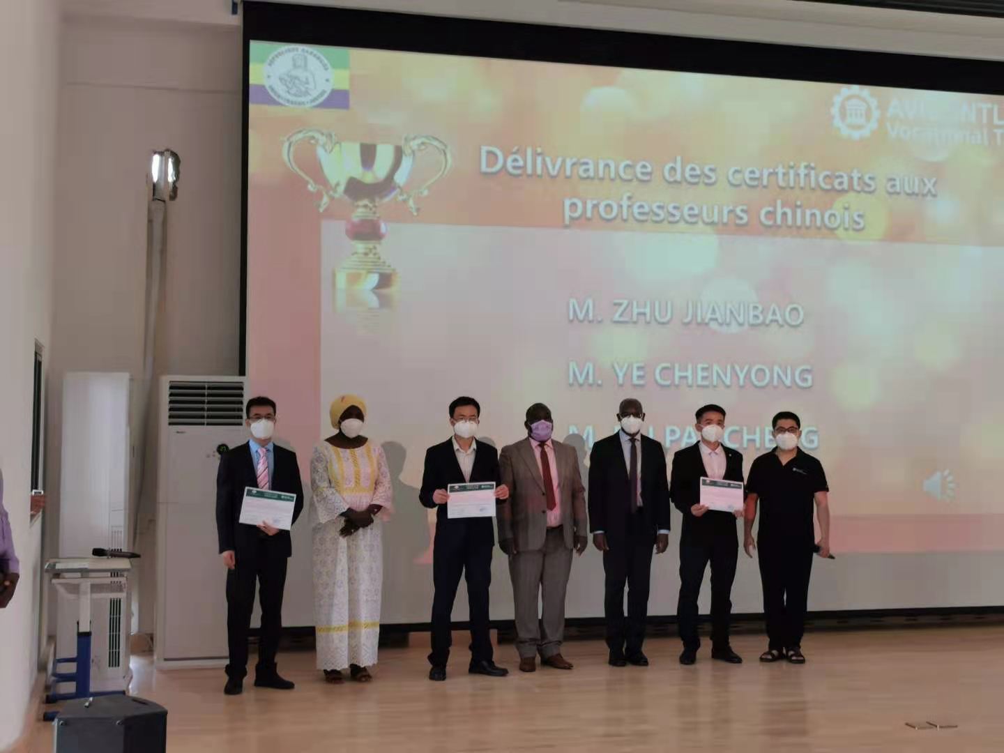 138天來,我們夜以繼日,通過教學(xué)方式和理念的創(chuàng)新,逐一攻堅克難,解決困難,砥礪奮戰(zhàn),于2021年1月17日順利完成加蓬職教項目。畢業(yè)典禮時,加蓬國家的教育部、科技部、勞工部領(lǐng)導(dǎo)都來到了現(xiàn)場,給予我們高度評價,并授予我們加蓬國家嘉獎狀,這是我校獲得的首個國際嘉獎。