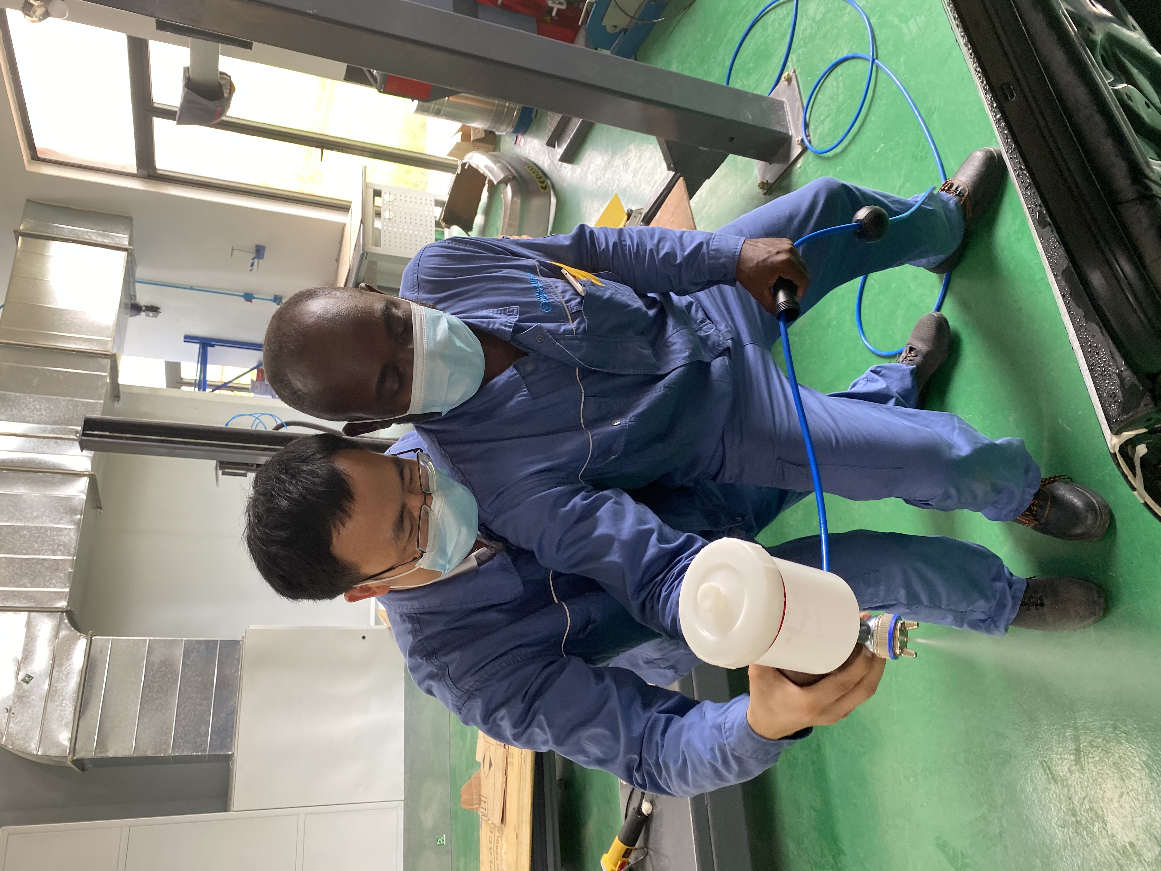 當我們?nèi)σ愿伴_展工作的時候,又發(fā)現(xiàn)一切都不是想象中那么順利,斷電斷水、文化差異、教育理念不同、語言的不通我們都可以克服,但沒有工具、買不到耗材、帶來的教學(xué)資源儲備完全不適應(yīng)當?shù)亓慊A(chǔ)的學(xué)員,等等一系列困難一個接一個冒出來。我自己制作工具、自己籌集耗材、臨時制作教學(xué)資源、帶這非洲的學(xué)員一起拜訪當?shù)仄嚻髽I(yè)介紹校企合作經(jīng)驗等。因為時差,我常常上完課后忙到深夜12點才能跟國內(nèi)聯(lián)系,學(xué)院黨委總能在第一時間回應(yīng),幫助我們解決問題,這成為團隊在前方迎難而上最有力、最可靠的組織保障。