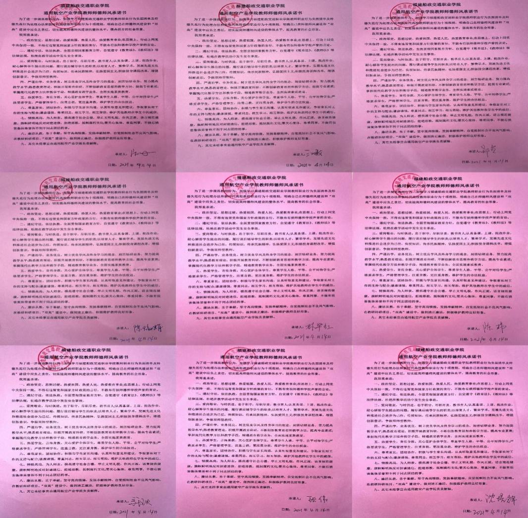 “不忘初心學(xué)黨史 ,砥礪前行鑄師魂?!睘榍袑?shí)加強(qiáng)教師職業(yè)道德和師德師風(fēng)建設(shè),進(jìn)一步規(guī)范教育教學(xué)行為,樹(shù)立廉潔從教的師德風(fēng)范。通用航空產(chǎn)業(yè)學(xué)院召開(kāi)“學(xué)黨史,強(qiáng)信念,鑄師魂”師德師風(fēng)專題培訓(xùn),全體教師參加了培訓(xùn)會(huì),會(huì)議由黨總支副書(shū)記蘇漢美主持。首先,由副書(shū)記蘇漢美帶領(lǐng)老師重點(diǎn)學(xué)習(xí)4月12日至13日在京召開(kāi)的全國(guó)職業(yè)教育大會(huì)《習(xí)近平總書(shū)記對(duì)職業(yè)教育工作重要指示和全國(guó)職業(yè)教育大會(huì)精神》、學(xué)習(xí)了《新時(shí)代高校教師職業(yè)行為十項(xiàng)準(zhǔn)則》、《福建船政交通職業(yè)學(xué)院教師職業(yè)行為負(fù)面清單及師德失范行為處理辦法》相關(guān)規(guī)范和條文,號(hào)召全體教師要不斷提高師德素養(yǎng),嚴(yán)于律己,履行教師職責(zé),使大家明確了本次專題活動(dòng)的重要性及意義與會(huì)老師在相互見(jiàn)證下鄭重地簽下了承諾書(shū)。