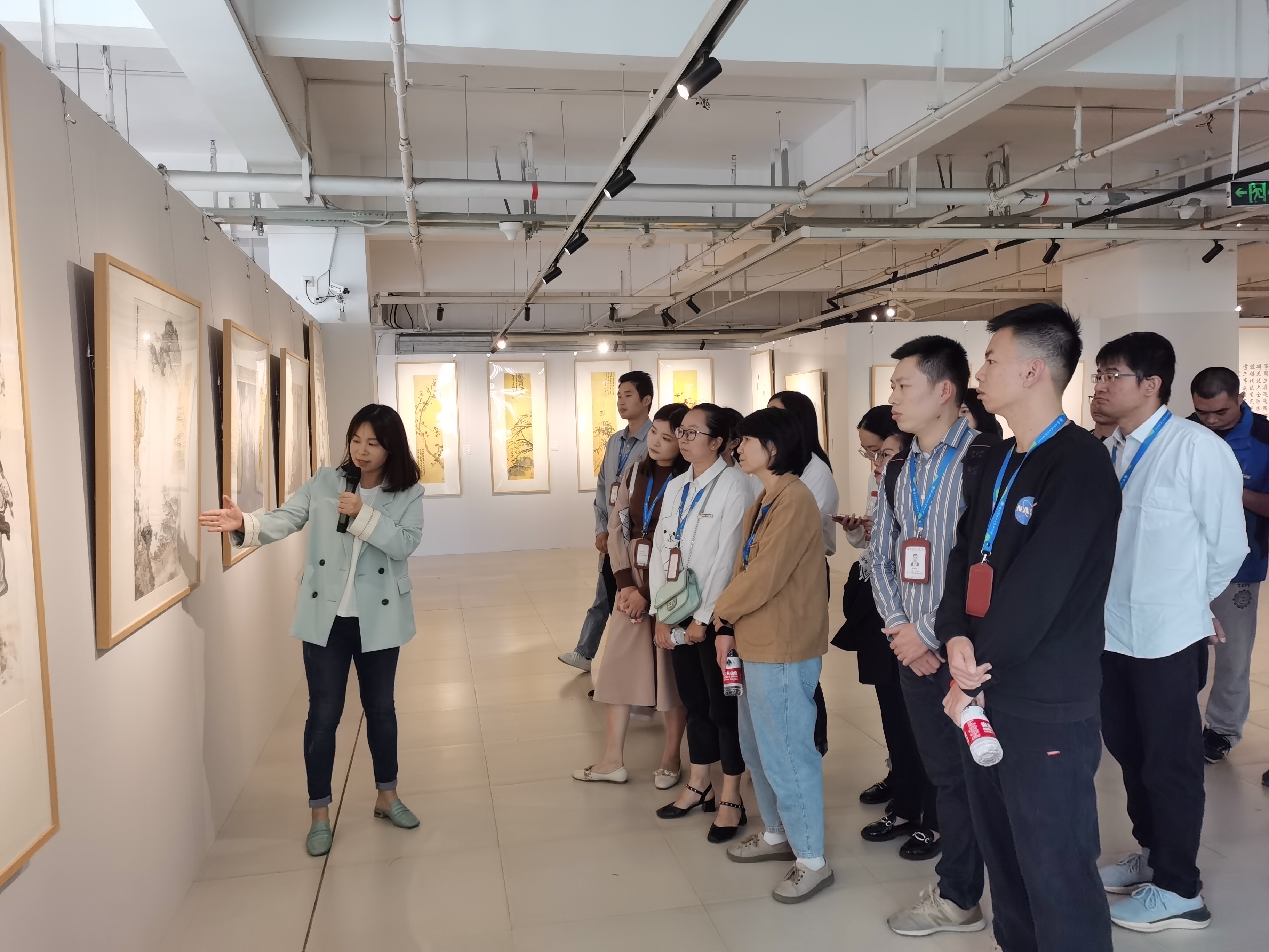參觀完校史館,新教師們來(lái)到黨風(fēng)廉政書畫作品展館,展館作品包含國(guó)畫、水彩、書法等種類,既有廉政、對(duì)聯(lián)、格言警句為內(nèi)容的詩(shī)詞,又有借物詠志的山水花鳥等畫作,給新教師們帶來(lái)了一場(chǎng)藝術(shù)盛宴。