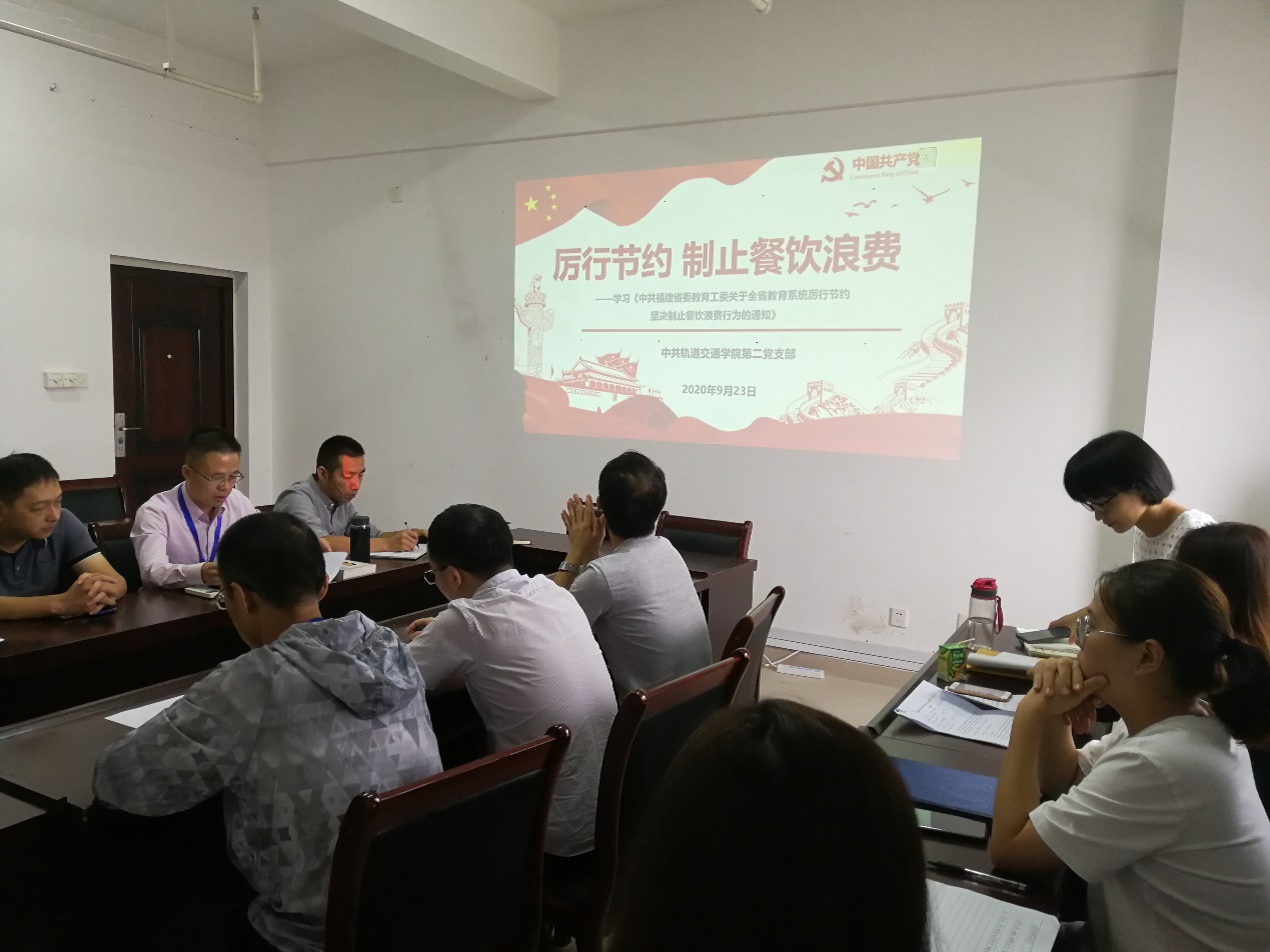9月23日下午13:30,軌道交通學(xué)院第二黨支部全體黨員在圖書館11樓會議室開展了以“厲行勤儉節(jié)約、反對餐飲浪費”為主題的黨日活動,支部書記陳天炎同志主持了本次黨日活動。