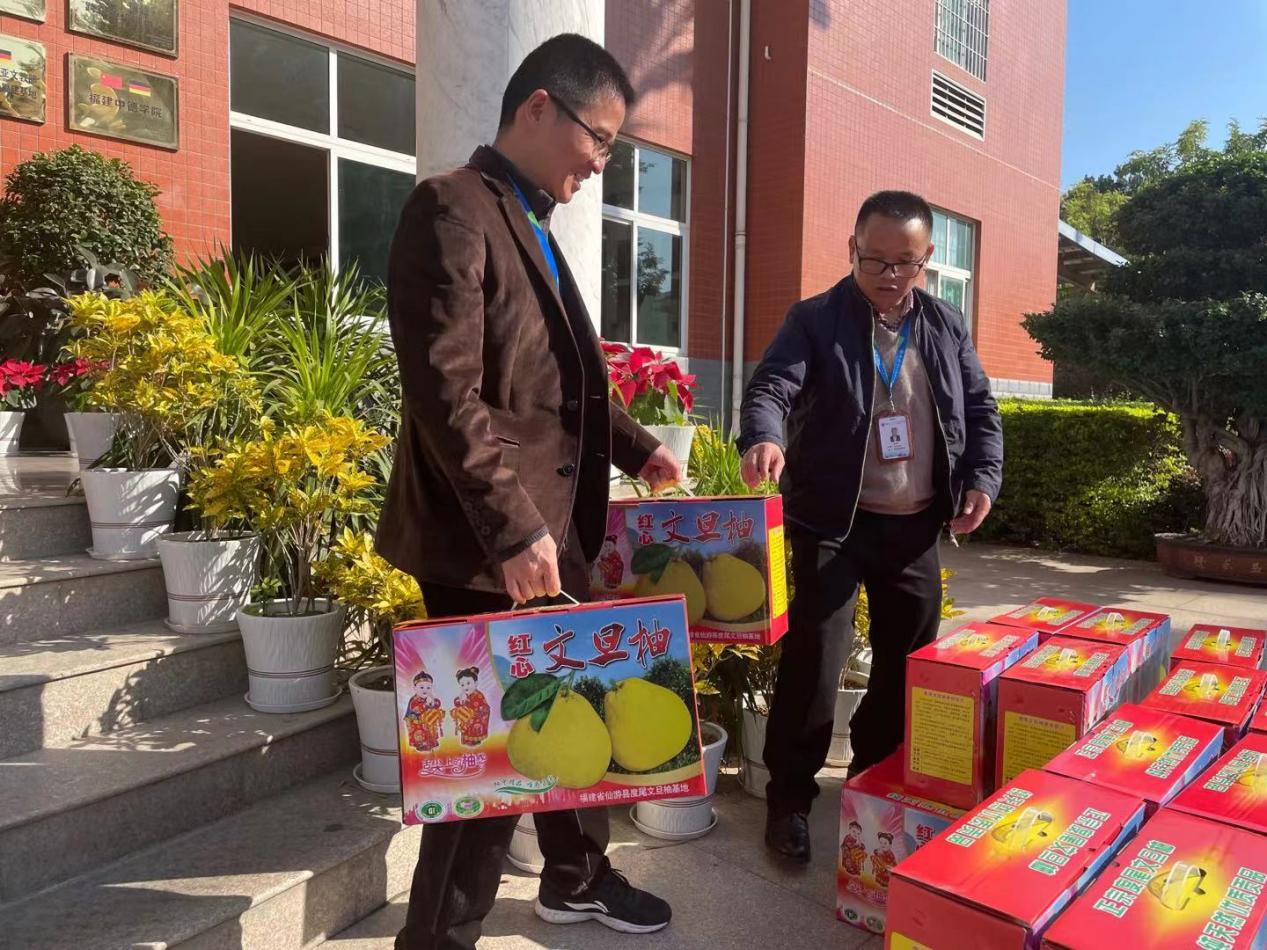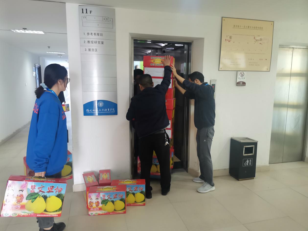 學院工會貼心為廣大教職工們每人準備了一箱莆田文旦柚子,王主席連夜通知分工會第二天領(lǐng)取。一早我院分工會的志愿者們一起動手把柚子搬回了辦公室,進行了分發(fā)。