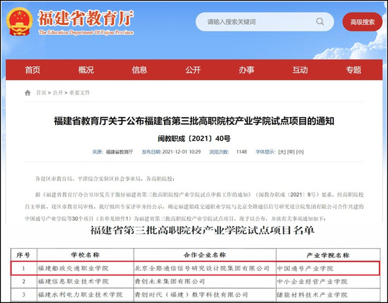 圖15 中國(guó)通號(hào)產(chǎn)業(yè)學(xué)院成功入選省級(jí)產(chǎn)業(yè)學(xué)院試點(diǎn)項(xiàng)目