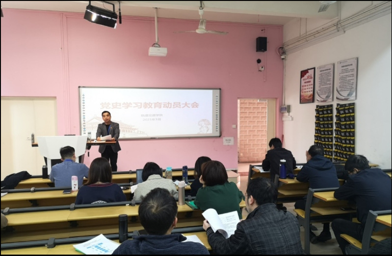 軌道交通學(xué)院黨總支堅(jiān)持以習(xí)近平新時(shí)代中國(guó)特色社會(huì)主義思想為指導(dǎo),加強(qiáng)理論學(xué)習(xí),筑牢理論根基,感悟思想偉力,進(jìn)一步引導(dǎo)全院教職工捍衛(wèi)“兩個(gè)確立”、增強(qiáng)“四個(gè)意識(shí)”、堅(jiān)定“四個(gè)自信”、做到“兩個(gè)維護(hù)”。2021年3月24日,軌道交通學(xué)院迅速啟動(dòng)黨史學(xué)習(xí)教育工作,召開黨史學(xué)習(xí)教育動(dòng)員大會(huì),根據(jù)全省教育系統(tǒng)黨史學(xué)習(xí)教育動(dòng)員部署會(huì)視頻會(huì)議及校黨委黨史學(xué)習(xí)教育動(dòng)員部署會(huì)議精神,要求把黨史學(xué)習(xí)作為一項(xiàng)重大的政治任務(wù),建立黨總支理論學(xué)習(xí)中心組制度,制定學(xué)習(xí)計(jì)劃,做到學(xué)院一盤棋統(tǒng)籌、一體化推進(jìn)。各支部實(shí)施黨史學(xué)習(xí)教育計(jì)劃,制定專題學(xué)習(xí)、專題培訓(xùn)、著重在學(xué)習(xí)內(nèi)容、學(xué)習(xí)步驟、學(xué)習(xí)方式上做深做實(shí),突出學(xué)黨史、悟思想、辦實(shí)事、開新局,把黨史學(xué)習(xí)教育融入日常、抓在經(jīng)常,確保學(xué)習(xí)教育各項(xiàng)任務(wù)落到實(shí)處。