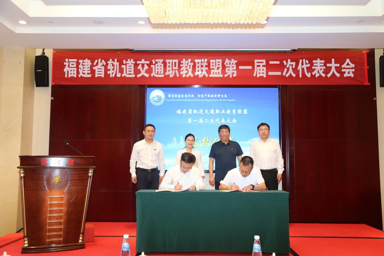 陳天炎理事長對(duì)福建省軌道交通職教聯(lián)盟2023年工作做總結(jié)報(bào)告并提出聯(lián)盟下一步工作計(jì)劃,會(huì)議審議通過了福建省軌道交通職教聯(lián)盟新增成員單位,聯(lián)盟的成員單位由37家增至40家。會(huì)上,泉州中車唐車軌道車輛有限公司與福建船政交通職業(yè)學(xué)院簽訂產(chǎn)教融合合作協(xié)議,并共同為產(chǎn)教融合實(shí)訓(xùn)基地揭牌。