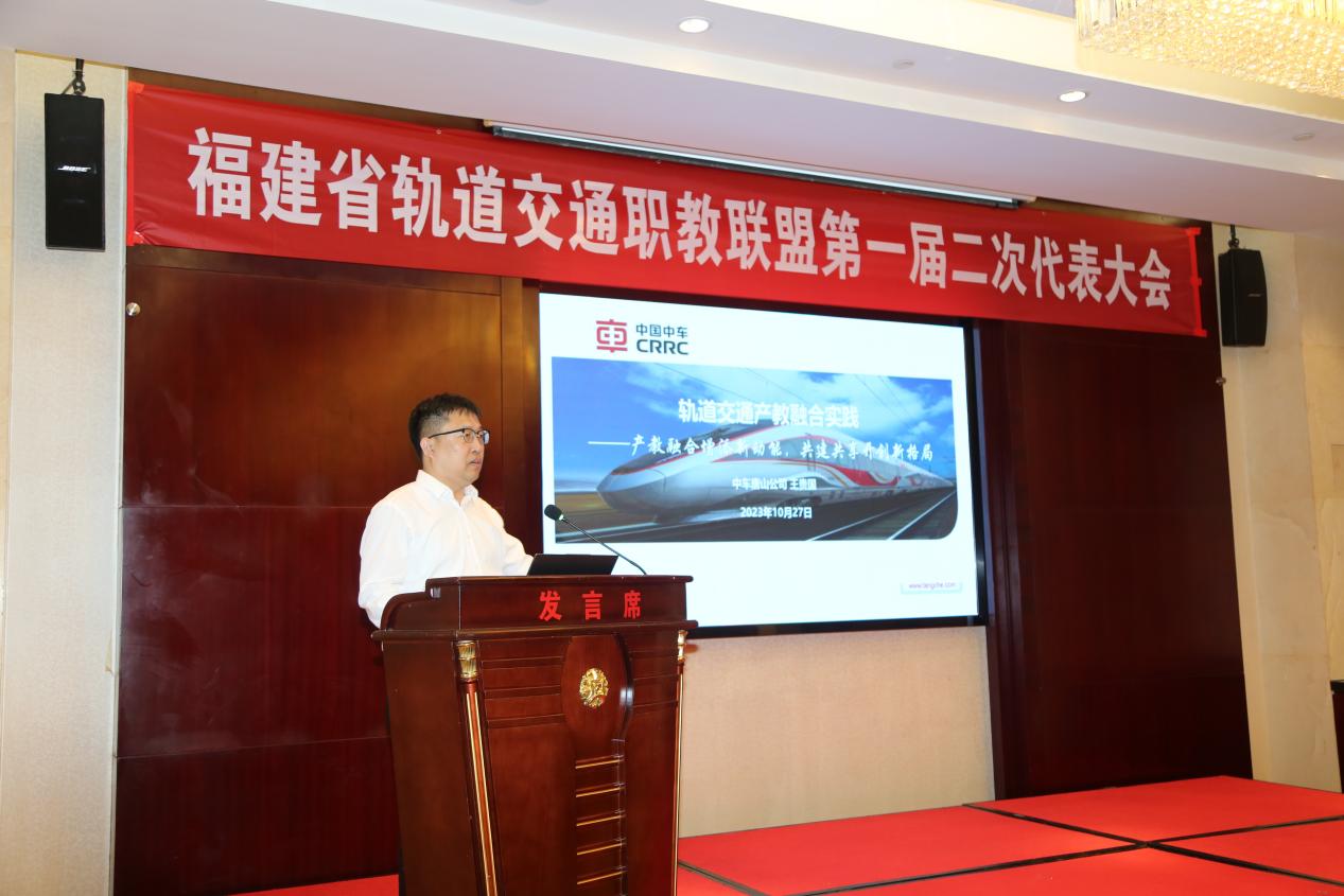 本次大會(huì)由福建省軌道交通職業(yè)教育聯(lián)盟、福建船政交通職業(yè)學(xué)院主辦,泉州中車唐車軌道車輛有限公司協(xié)辦。會(huì)議開始,中車唐山機(jī)車車輛有限公司紀(jì)委書記周新遠(yuǎn)致辭,表示中車唐山機(jī)車車輛有限公司將繼續(xù)從發(fā)揮產(chǎn)業(yè)工人隊(duì)伍優(yōu)勢(shì),發(fā)揮數(shù)字化、創(chuàng)新轉(zhuǎn)型優(yōu)勢(shì),發(fā)揮創(chuàng)新平臺(tái)優(yōu)勢(shì),發(fā)揮產(chǎn)業(yè)鏈鏈長優(yōu)勢(shì)四方面,推動(dòng)職業(yè)教育與軌道交通裝備產(chǎn)業(yè)高度匹配、高效互動(dòng),共促福建省軌道交通事業(yè)的創(chuàng)新發(fā)展。