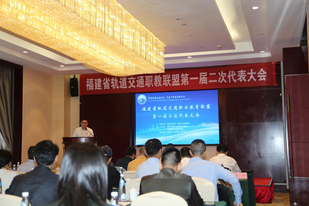 10月27日,福建省軌道交通職業(yè)教育聯(lián)盟第一屆二次代表大會(huì)在泉州舉行。中車唐山機(jī)車車輛有限公司紀(jì)委書記周新遠(yuǎn),福建船政交通職業(yè)學(xué)院黨委委員、副校長陳艷紅,中車唐山機(jī)車車輛有限公司戰(zhàn)略發(fā)展部部長王貴國,泉州中車唐車軌道車輛有限公司總經(jīng)理姚小偉,泉州中車唐車軌道車輛有限公司書記、副總經(jīng)理程利剛,福建省軌道交通職教聯(lián)盟理事長、福建船政交通職業(yè)學(xué)院軌道交通學(xué)院院長陳天炎等相關(guān)單位領(lǐng)導(dǎo)以及來自省內(nèi)外50余位軌道交通企業(yè)、院校、行業(yè)協(xié)會(huì)等單位代表參會(huì)。