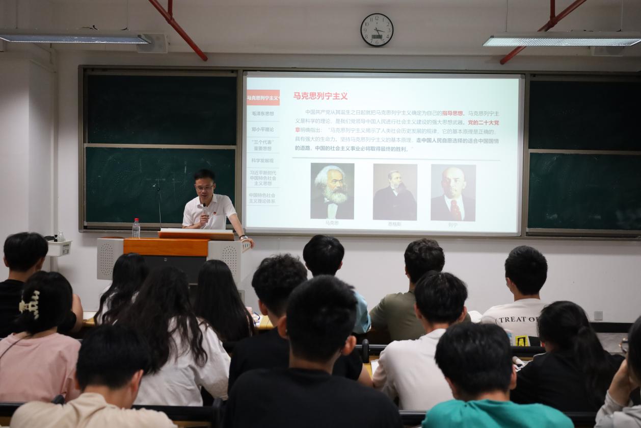 陳天炎院長(zhǎng)分別從理論的形成與發(fā)展、理論的主要內(nèi)容、理論的歷史地位三個(gè)方面,對(duì)馬克思列寧主義、毛澤東思想、鄧小平理論、“三個(gè)代表”重要思想、科學(xué)發(fā)展觀、習(xí)近平新時(shí)代中國(guó)特色社會(huì)主義思想展開(kāi)講解。他指出,全體學(xué)員要深刻理解習(xí)近平新時(shí)代中國(guó)特色社會(huì)主義思想的核心要義、精神實(shí)質(zhì)、豐富內(nèi)涵、實(shí)踐要求,不斷增強(qiáng)政治意識(shí)、大局意識(shí)、核心意識(shí)、看齊意識(shí),立志做有理想、敢擔(dān)當(dāng)、能吃苦、肯奮斗的新時(shí)代好青年,讓青春在全面建設(shè)社會(huì)主義現(xiàn)代化國(guó)家的火熱實(shí)踐中綻放絢麗之花。