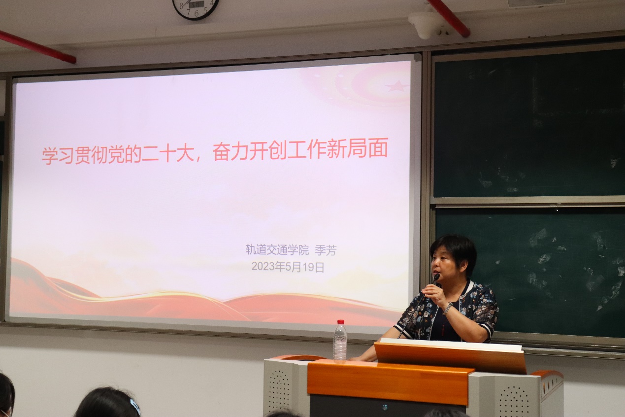 為深入貫徹落實(shí)習(xí)近平總書(shū)記關(guān)于“全面學(xué)習(xí)、全面把握、全面落實(shí)”的重要指示要求,持續(xù)推動(dòng)學(xué)習(xí)落實(shí)黨的二十大精神往深里走、往實(shí)里走、往心里走,軌道交通學(xué)院副院長(zhǎng)季芳于2023年5月19日開(kāi)展“學(xué)習(xí)貫徹黨的二十大,奮力開(kāi)創(chuàng)工作新局面”主題宣講會(huì)。
