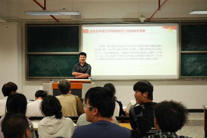 為深入開展學(xué)習(xí)貫徹習(xí)近平新時(shí)代中國特色社會(huì)主義思想主題教育,強(qiáng)化對(duì)學(xué)生的思想政治引領(lǐng),引導(dǎo)動(dòng)員學(xué)生學(xué)習(xí)黨的二十大精神,堅(jiān)定跟黨走,建功新時(shí)代,2023年5月30日,軌道交通學(xué)院2020級(jí)學(xué)生黨員張宇以“學(xué)習(xí)黨的二十大,砥礪奮進(jìn)新征程”為題,為軌道交通學(xué)院學(xué)生進(jìn)行主題教育專題宣講。