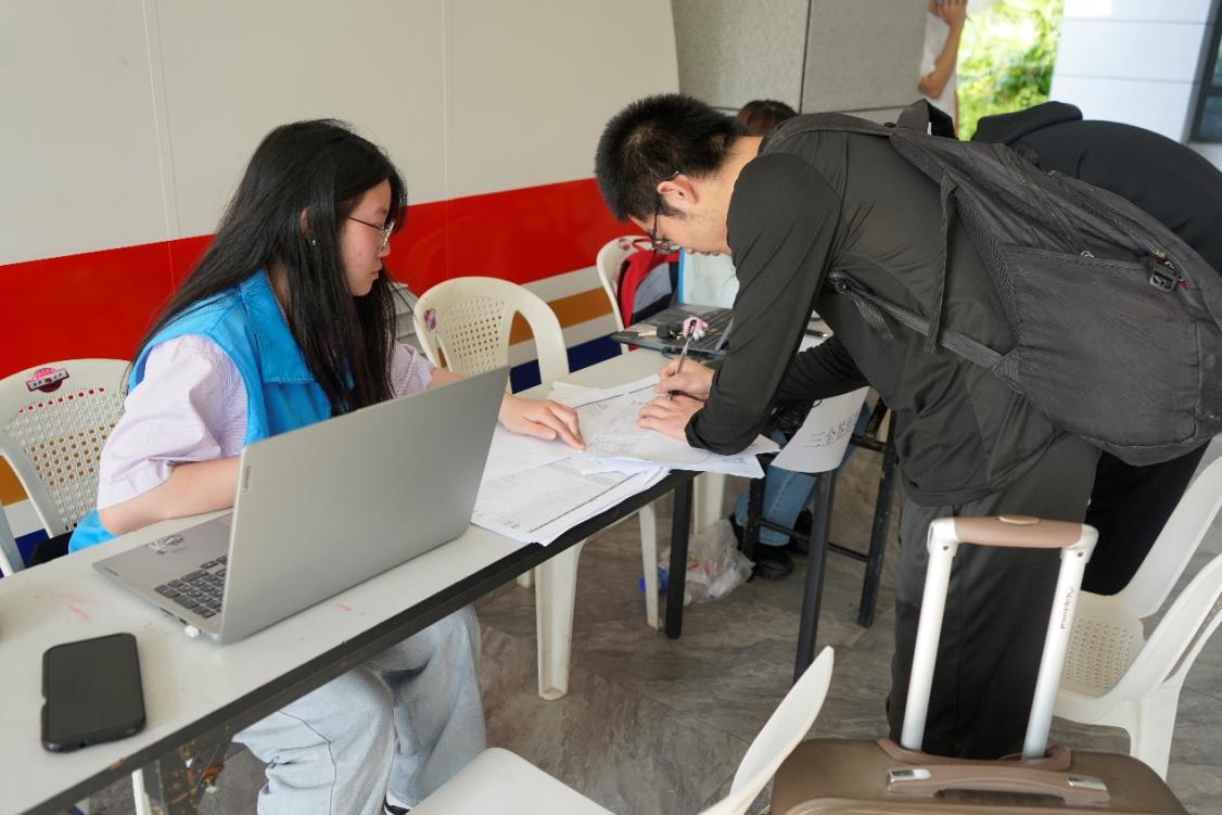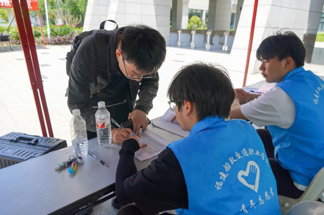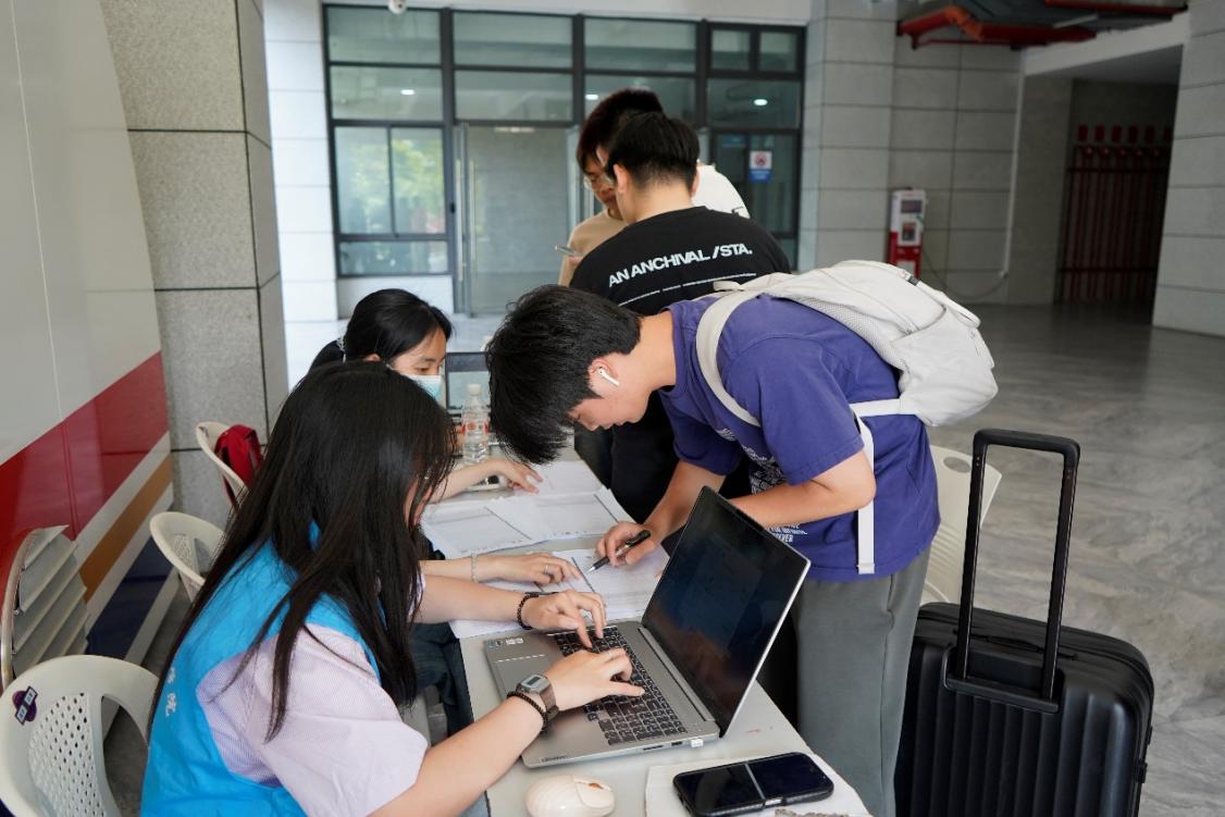 燦爛的陽光穿過樹枝間的空隙,透過早霧,一縷縷灑滿了校園。2024屆的軌道學(xué)子們在志愿者的帶領(lǐng)下,來到福船園藝新樓前報到點(diǎn)提交相關(guān)文件。