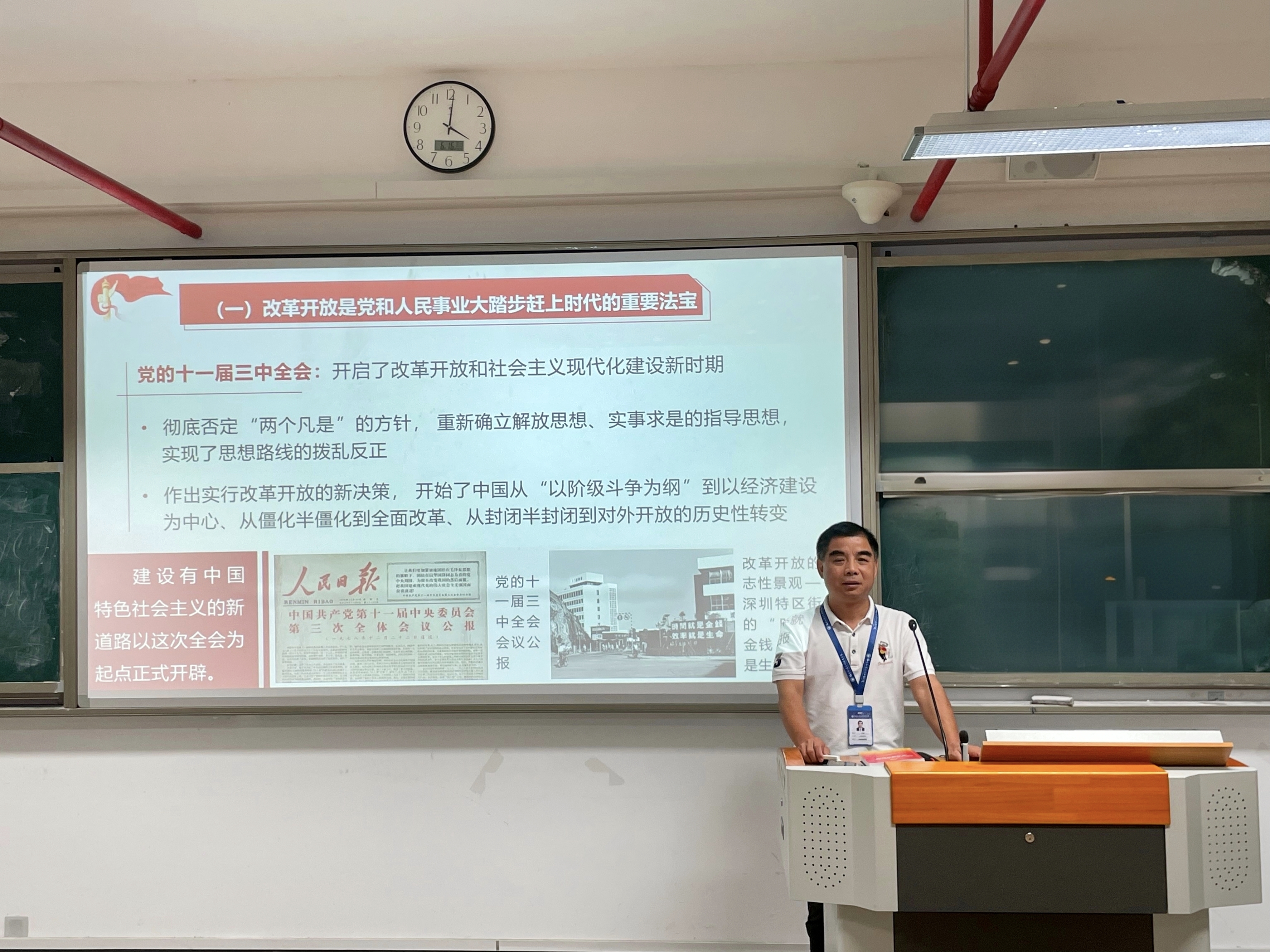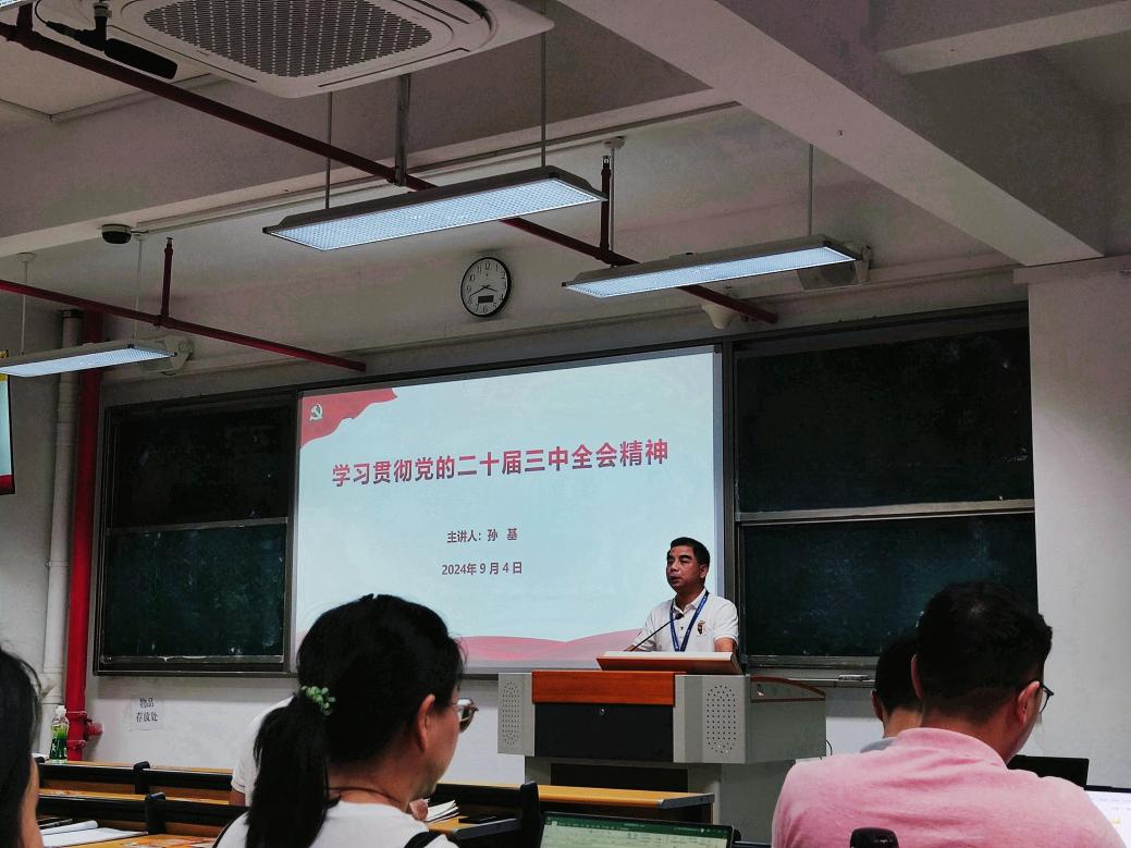 為深入學(xué)習(xí)貫徹黨的二十屆三中全會(huì)精神,進(jìn)一步加深學(xué)院全體教職工對(duì)《中共中央關(guān)于進(jìn)一步全面深化改革、推進(jìn)中國(guó)式現(xiàn)代化的決定》的學(xué)習(xí)理解,9月4日,軌道交通學(xué)院黨總支書記孫基進(jìn)行專題宣講,軌道交通學(xué)院全體教職工參加會(huì)議。