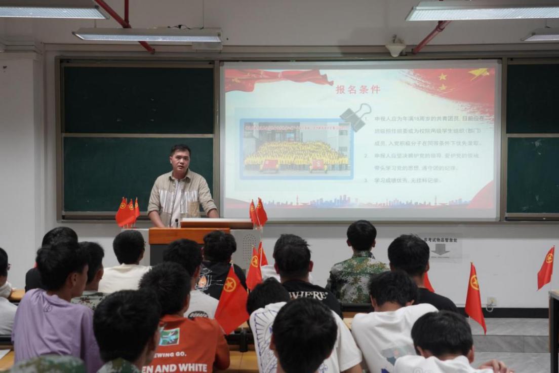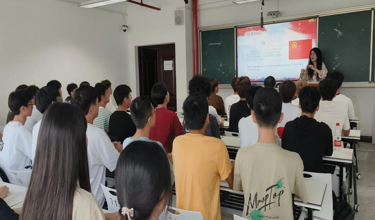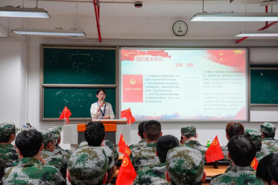 團(tuán)委副書(shū)記鄭華輝詳細(xì)闡述了共青團(tuán)的性質(zhì)、團(tuán)旗、團(tuán)徽、團(tuán)歌以及共青團(tuán)的發(fā)展史。他充滿了對(duì)青年學(xué)生的殷切期望,希望新時(shí)代的中國(guó)青年能以實(shí)現(xiàn)中華民族偉大復(fù)興為己任,不負(fù)時(shí)代以及黨和人民的期望。在青春的賽道上,如乘風(fēng)破浪般奮力奔跑,勇往直前。