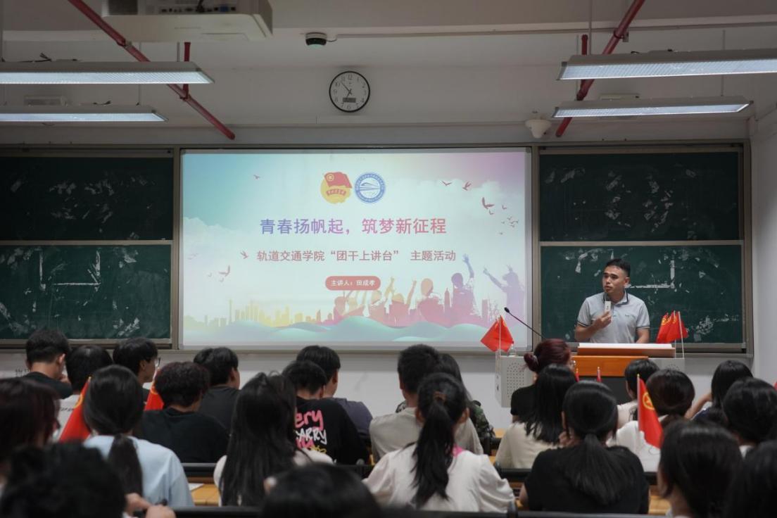 在新學(xué)期伊始,為了加深學(xué)生對(duì)團(tuán)組織的認(rèn)識(shí)并激發(fā)他們的成長(zhǎng)動(dòng)力,軌道交通學(xué)院特別策劃了主題為“團(tuán)干部上講臺(tái)”暨開(kāi)學(xué)第一課——“青春揚(yáng)帆起,筑夢(mèng)新征程”系列活動(dòng)?;顒?dòng)于2024年9月27日至10月17日在南區(qū)實(shí)訓(xùn)樓舉辦,由學(xué)院團(tuán)委書(shū)記林欣欣、團(tuán)委副書(shū)記鄭華輝、團(tuán)委組織委員張毅、團(tuán)委宣傳委員任香螢、輔導(dǎo)員田成孝共同主講。