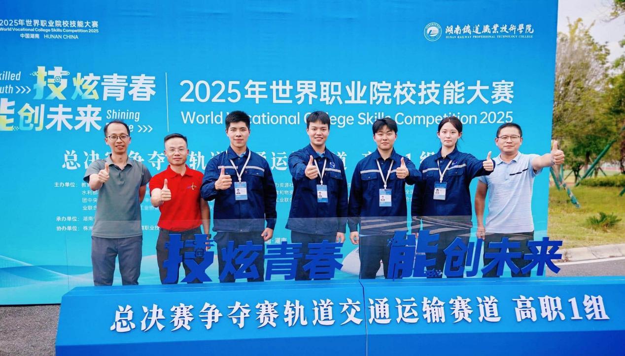 2025年8月27日至31日,2025年世界職業(yè)院校技能大賽軌道交通運輸賽道總決賽爭奪賽在湖南省株洲市成功舉辦。我院軌道交通學(xué)院學(xué)子彭溢、鄭家鎮(zhèn)、李瑋杰、王希盈四位同學(xué)組成代表隊,憑借扎實的專業(yè)功底、默契的團隊協(xié)作和頑強的拼搏精神,最終從全國155支隊伍中成功突圍,斬獲本次大賽銀獎,為學(xué)院贏得了榮譽。