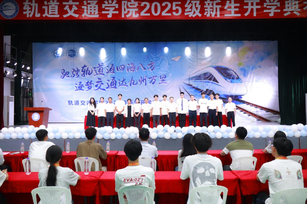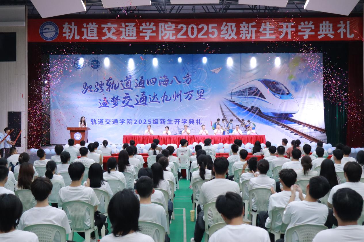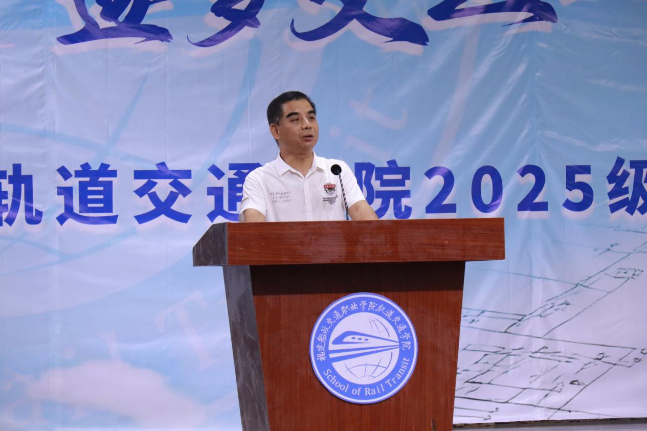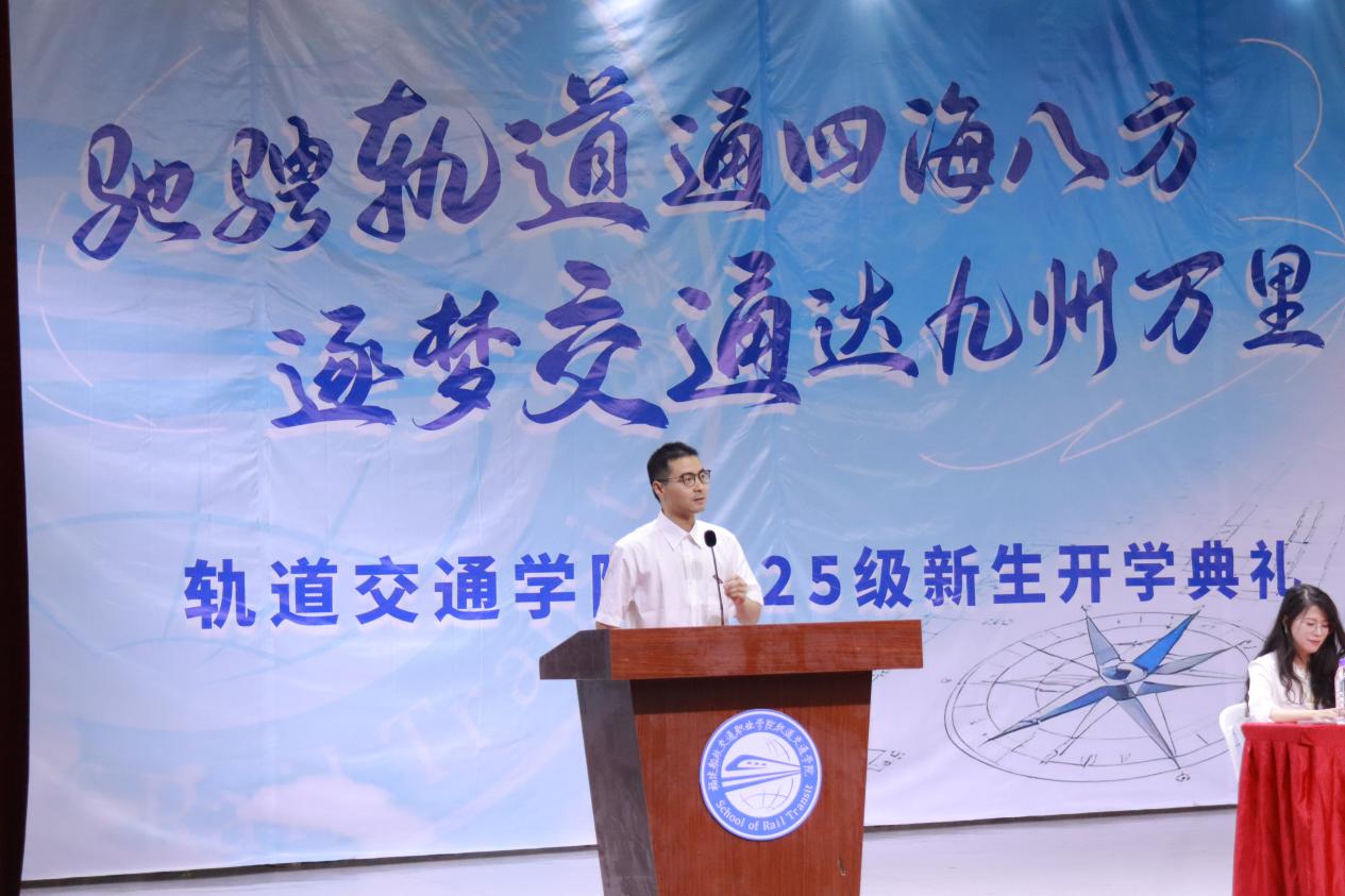 “希望同學(xué)們?cè)诖髮W(xué)期間,結(jié)交兩個(gè)‘摯友’——一個(gè)是操場(chǎng),一個(gè)是圖書館?!避壍澜煌▽W(xué)院院長(zhǎng)陳天炎在致辭中,用親切的比喻為新生指引方向。他鼓勵(lì)同學(xué)們走出宿舍,在操場(chǎng)揮灑汗水、強(qiáng)健體魄;走進(jìn)圖書館,在書頁(yè)間汲取知識(shí)、開闊眼界,以健康的身心與扎實(shí)的學(xué)識(shí),為未來的軌道事業(yè)打下堅(jiān)實(shí)基礎(chǔ)。